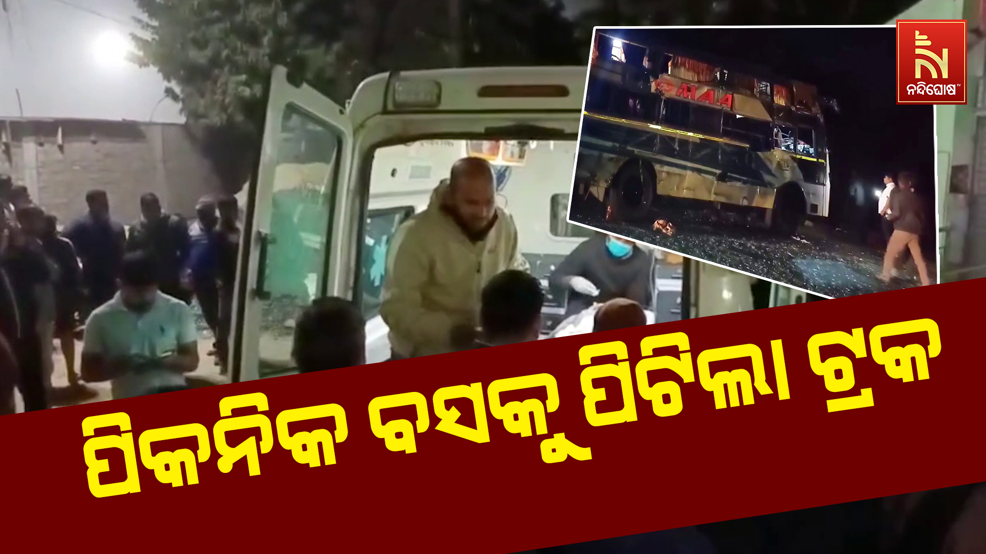 ନୟାଗଡ଼: ଦଶପଲ୍ଲା ଶାଳଭଙ୍ଗା ଛକ ନିକଟରେ ଭୟଙ୍କର ସଡ଼କ ଦୁର୍ଘଟଣା। ଦଶପଲ୍ଲାରୁ ହରିଶଙ୍କର ଯାଉଥିବା ପିକନିକ ବସକୁ ପିଟିଲା ଚାଉଳ ବୋଝେଇ ଟ୍ରକ। ଦୁର୍ଘଟଣାରେ ୩ ଜଣଙ୍କ ମୃତ୍ୟୁ ହୋଇଥିବା ବେଳେ ୧୨ ଜଣ ଆହତ ହୋଇଛନ୍ତି। ଘଟଣାସ୍ଥଳରେ ବାଣିଗୋଚ୍ଛା ପୋଲିସ ପହଞ୍ଚି ତଦନ୍ତ ଜାରି ରଖିଛି। ଆହତଙ୍କୁ ଦଶପଲ୍ଲା ଗୋଷ୍ଠୀ ସ୍ବାସ୍ଥ୍ୟ କେନ୍ଦ୍ରରେ ଭର୍ତ୍ତି କରାଯାଇଛି।