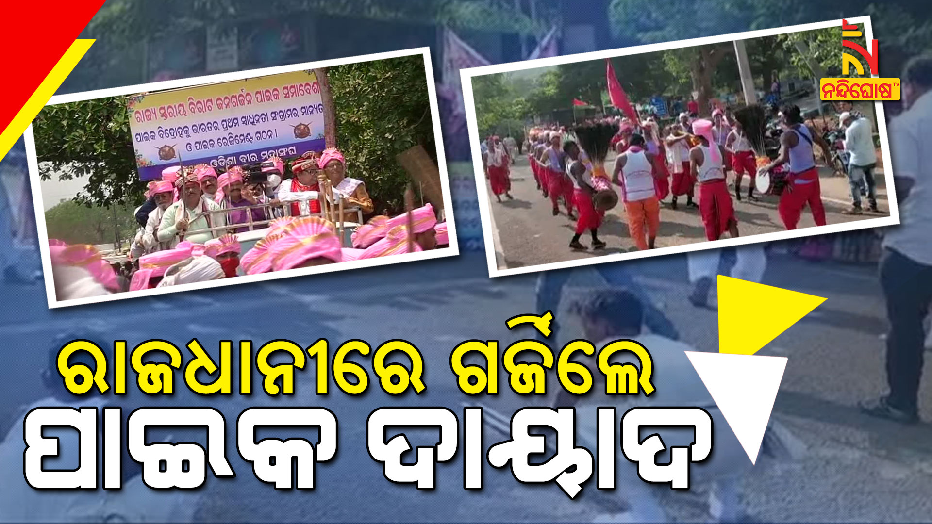 ଭୁବନେଶ୍ବର: ପାଇକ ବିଦ୍ରୋହକୁ ପ୍ରଥମ ସ୍ଵାଧୀନତା ସଂଗ୍ରାମ ମାନ୍ୟତା ଦିଅ । ଏମିତି ନାରାରେ ଆଜି ପ୍ରକମ୍ପିତ ହୋଇଥିଲା ରାଜଧାନୀ ରାଜରାସ୍ତା । ହଜାର ହଜାର ପାଇକ ନିଜ ପୂର୍ବ ପୁରୁଷଙ୍କ ବଳିଦାନକୁ ପ୍ରଥମ ସ୍ବାଧୀନତା ସଂଗ୍ରାମ ମାନ୍ୟ ଦେବା ଦାବିରେ କରିଥିଲେ ବିଶାଳ ସମାବେଶ । ଓଡିଶା ବୀର ସମାବେଶ ପକ୍ଷରୁ ପାଇକ ଜନଗର୍ଜନ ସମାବେଶରେ ପାଇକ ଦାୟାଦ ଦେଖାଇଥିଲେ କଳାକୌଶଳ । ମାଷ୍ଟରକ୍ୟାଣ୍ଟିନଠାରୁ ଆରମ୍ଭ ହୋଇ ପ୍ରଦର୍ଶନୀ ପଡିଆ ଯାଏଁ ପାଇକ ଶୋଭାଯାତ୍ରା କରାଯାଇଛି ।