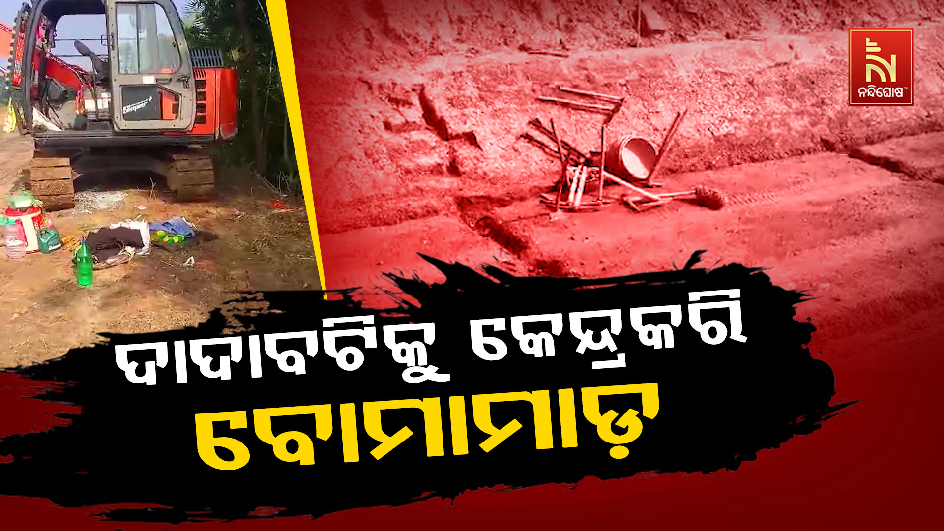 ନନ୍ଦିଘୋଷ ବ୍ୟୁରୋ: ଦାଦାବଟିକୁ କେନ୍ଦ୍ରକରି ବୋମାମାଡ଼ । କେନାଲ କାମ ଚାଲୁଥିବା ବେଳେ ଶ୍ରମିକଙ୍କ କ୍ୟାମ୍ପ ଓ ହିଟାଚି ମେସିନ୍ ଉପରକୁ ପଡିଲା ବୋମା । ପିପିଲି ସହଜପୁର ପଞ୍ଚାୟତ ପୋସଲ ମାଇନର କେନାଲ କାମ ଚାଲୁଥିବା ବେଳେ ବୋମାମାଡ। ବୋମାମାଡରେ ଭାଙ୍ଗିଲା ମେସିନ। ଘଟଣାସ୍ଥଳରେ ପ୍ରାୟ ୬ଟି ବୋମାମାଡ ହୋଇଥିବା ସୂଚନା। କେନାଲ କାମରେ ନିୟୋଜିତ କର୍ମଚାରୀଙ୍କ କ୍ୟାମ୍ପ ଉପରକୁ ହୋଇଛି ବୋମାମାଡ।