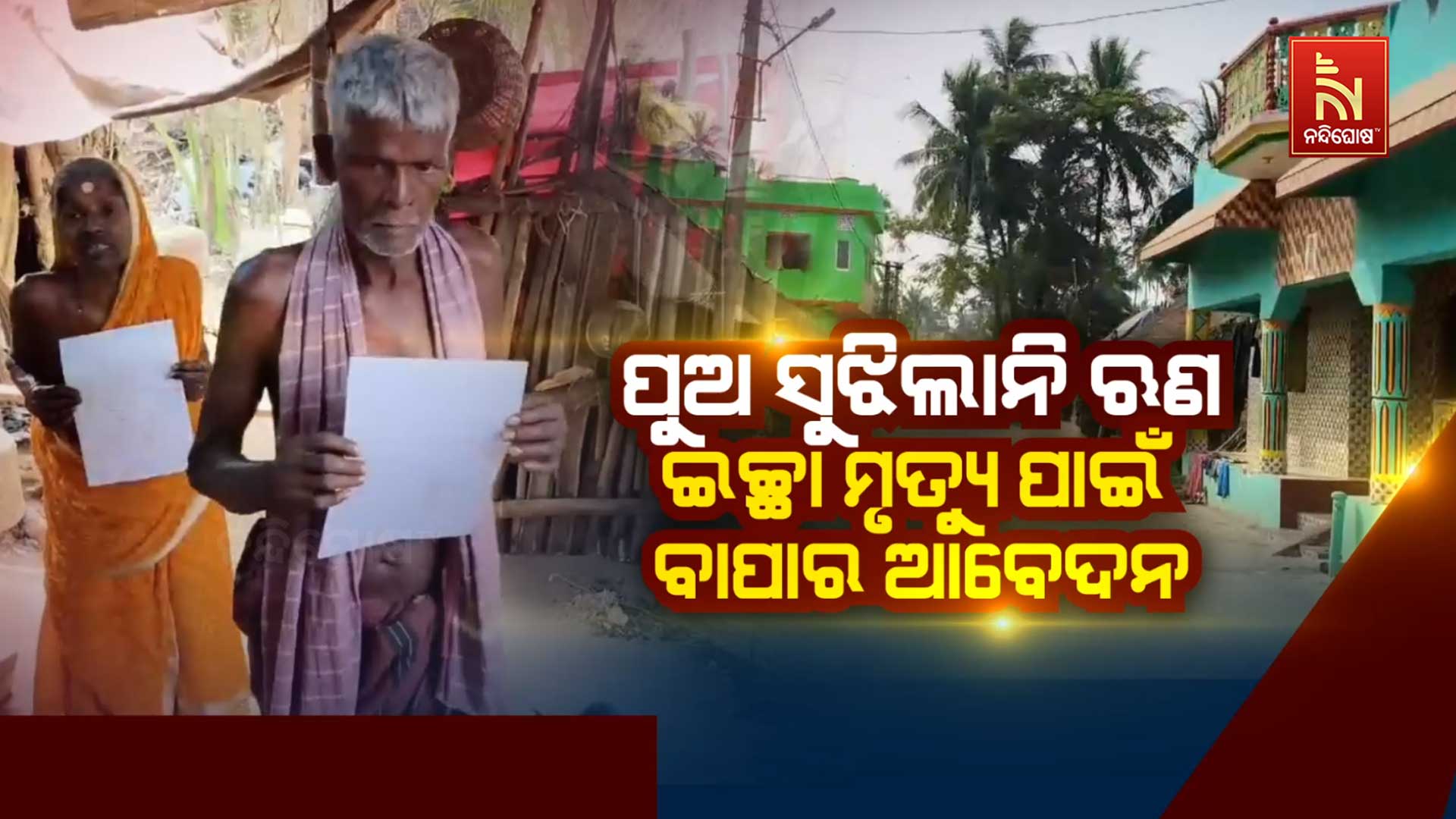 ନନ୍ଦିଘୋଷ ବ୍ୟୁରୋ: ଋଣ କଲା ପୁଅ, ହେଲେ ନଶୁଝିବାରୁ ବ୍ୟାଙ୍କ ଘର ନିଲାମ କରିବାକୁ ନୋଟିସ୍ କଲା । ଏ ନେଇ ଚିନ୍ତାରେ ବୃଦ୍ଧ ବାପା ମାଆ । ବାରମ୍ବାର ପୁଅକୁ ଋଣ ଶୁଝିବାକୁ ନେହୁରା ହେବା ପରେ ମଧ୍ୟ ନଶୁଣିବାରୁ ଚରମ ନିଷ୍ପତ୍ତି ନେଇଛନ୍ତି ବାପା ମାଆ । ବଞ୍ଚି ଥାଉଥାଉ ଘର ନିଲାମ କଷ୍ଟ ସହିନପାରି ଇଚ୍ଛା ମୃତ୍ୟୁ ପାଇଁ ରାଷ୍ଟ୍ରପତିଙ୍କୁ ଆବେଦନ କରିଛନ୍ତି ।