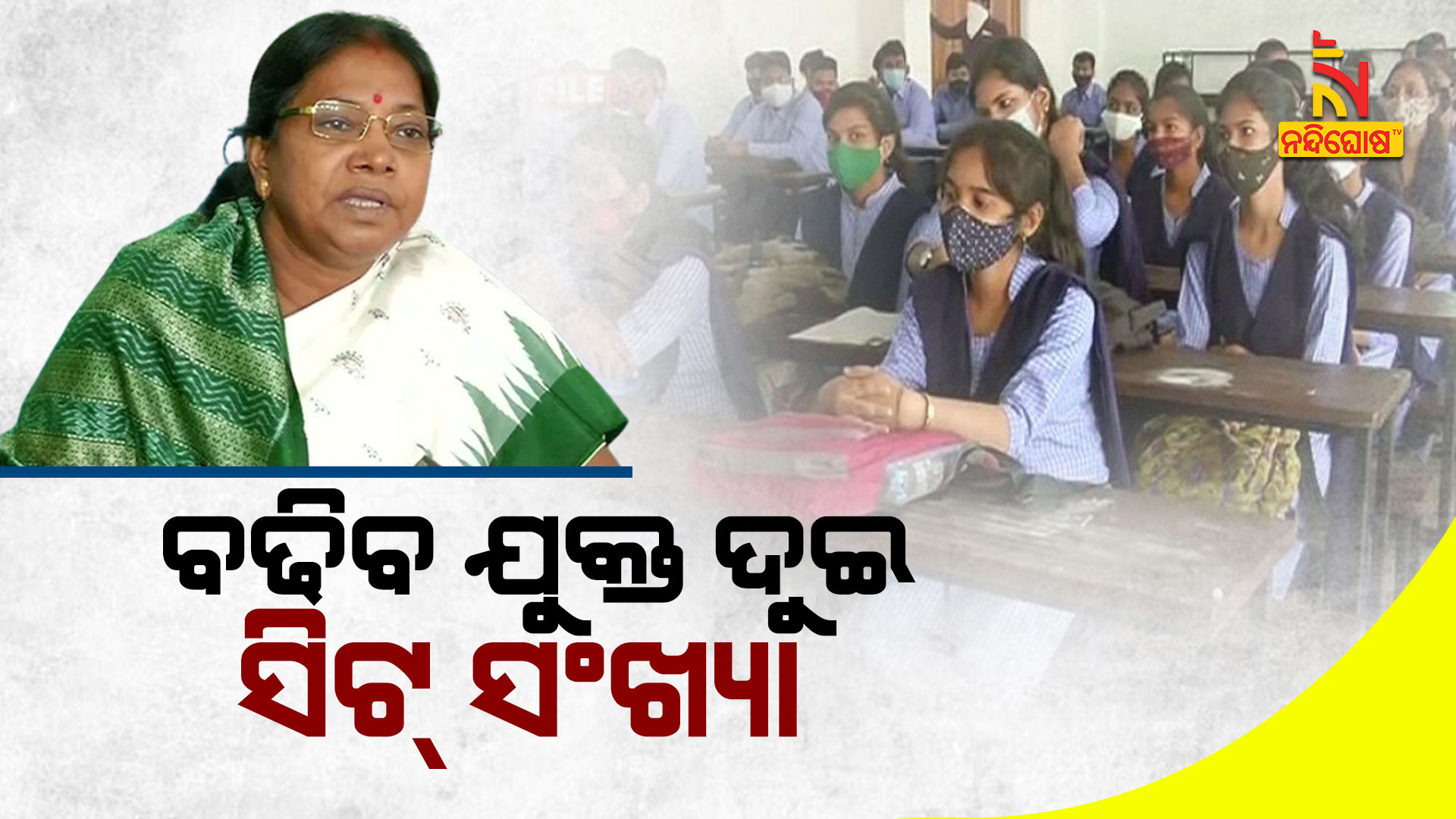 ମେଧାବୀ ଛାତ୍ରଛାତ୍ରୀ ନିଶ୍ଚିତ ଭଲ କଲେଜରେ ସିଟ୍ ପାଇବେ। ଯେତିକି ଯୁକ୍ତ ସିଟ୍ ଅଛି, ତାହା ପୂରଣ ହେବା ପରେ ସିଟ୍ ବଢ଼ିବା କଥା ଚିନ୍ତା କରାଯିବ । ଯେଉଁଠି ସିଟ୍ ବଢ଼ାଇବା ସମ୍ଭବ ହେବ, ବଢ଼ାଯିବ । ସବୁ ଦିଗକୁ ଚିନ୍ତା କରି ସିଟ୍ ବଢ଼ିବା ନିଷ୍ପତ୍ତି ନିଆଯିବ ବୋଲି କହିଛନ୍ତି ସ୍କୁଲ ଓ ଗଣଶିକ୍ଷା ମନ୍ତ୍ରୀ ପ୍ରମିଳା ମଲ୍ଲିକ ।