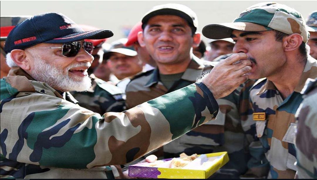 ଯବାନଙ୍କୁ ଜଣ ଜଣ କରି ମିଠା ଖୁଆଇ ଦୀପାବଳିର ବଧେଇ ଜଣାଇଛନ୍ତି ପ୍ରଧାନମନ୍ତ୍ରୀ। ଦେଶର ରକ୍ଷା କରିବାକୁ ଯବାନଙ୍କ ଶକ୍ତି ଉପରେ ଆମେ ବିଶ୍ଵାସ କରୁଛୁ ବୋଲି କହିଛନ୍ତି ପିଏମ୍। ସୀମାବର୍ତ୍ତୀ ଅଂଚଳରେ ପାରମ୍ପରିକ ଭିତ୍ତିଭୂମି ସୁଦୃଢ କରିବା ମୁଖ୍ୟ ଦାୟିତ୍ଵ ବୋଲି କହିଛନ୍ତି ପ୍ରଧାନମନ୍ତ୍ରୀ ମୋଦି। ଏହି ଅବସରରେ ପଡୋଶୀ ରାଷ୍ଟ୍ରଙ୍କୁ ଚେତାବନୀ ଉଦ୍ଦେଶ୍ୟରେ ଦେଶର ଗୋଟିଏ ଇଂଚ ଜାଗାକୁ ନେଇ ସାଲିସ କରାଯିବନି ବୋଲି କହିଛନ୍ତି ମୋଦି। ଏଥିଲାଗି ଦେଶର ନୀତି ସୁରକ୍ଷାକର୍ମୀଙ୍କ ସଂକଳ୍ପ ସହିତ ଯୋଡ଼ି ହୋଇ ରହିଛି ବୋଲି କହିଥିଲେ ପ୍ରଧାନମନ୍ତ୍ରୀ।