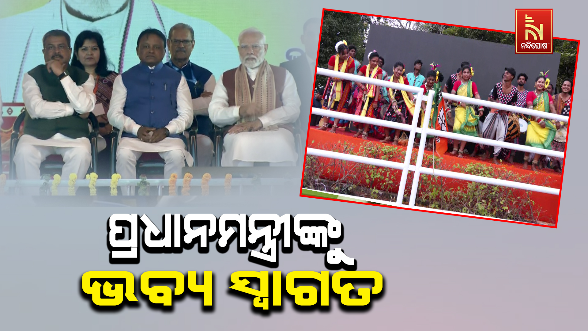 ପ୍ରଧାନମନ୍ତ୍ରୀ ଭୁବନେଶ୍ବର ବିମାନ ବନ୍ଦରରେ ପହଁଚିବା ପରେ ତାଙ୍କୁ ରାଜ୍ୟ ବିଜେପି ତରଫରୁ ଭବ୍ୟ ସ୍ବାଗତ କରାଯାଇଥିଲା । ମୁଖ୍ୟମନ୍ତ୍ରୀ ମୋହନ ମାଝୀ, କେନ୍ଦ୍ର ଶିକ୍ଷା ମନ୍ତ୍ରୀ ଧର୍ମେନ୍ଦ୍ର ପ୍ରଧାନ, ଉପମୁଖ୍ୟମନ୍ତ୍ରୀ କେଭି ସିଂହଦେଓ ଏବଂ ପ୍ରଭାତୀ ପରିଡାଙ୍କ ସମେତ ରାଜ୍ୟ ବିଜେପିର ବରିଷ୍ଠ ନେତା ଓ ସାଂସଦମାନେ ପ୍ରଧାନମନ୍ତ୍ରୀଙ୍କୁ ସ୍ବାଗତ କରିଥିଲେ । ସେଠାରୁ ସେ ବିମାନବନ୍ଦର ଛକରେ ରାଜ୍ୟ ବିଜେପି ପକ୍ଷରୁ ଆୟୋଜିତ ସମ୍ବର୍ଦ୍ଧନା ସଭାରେ ଯୋଗ ଦେଇଥିଲେ ।