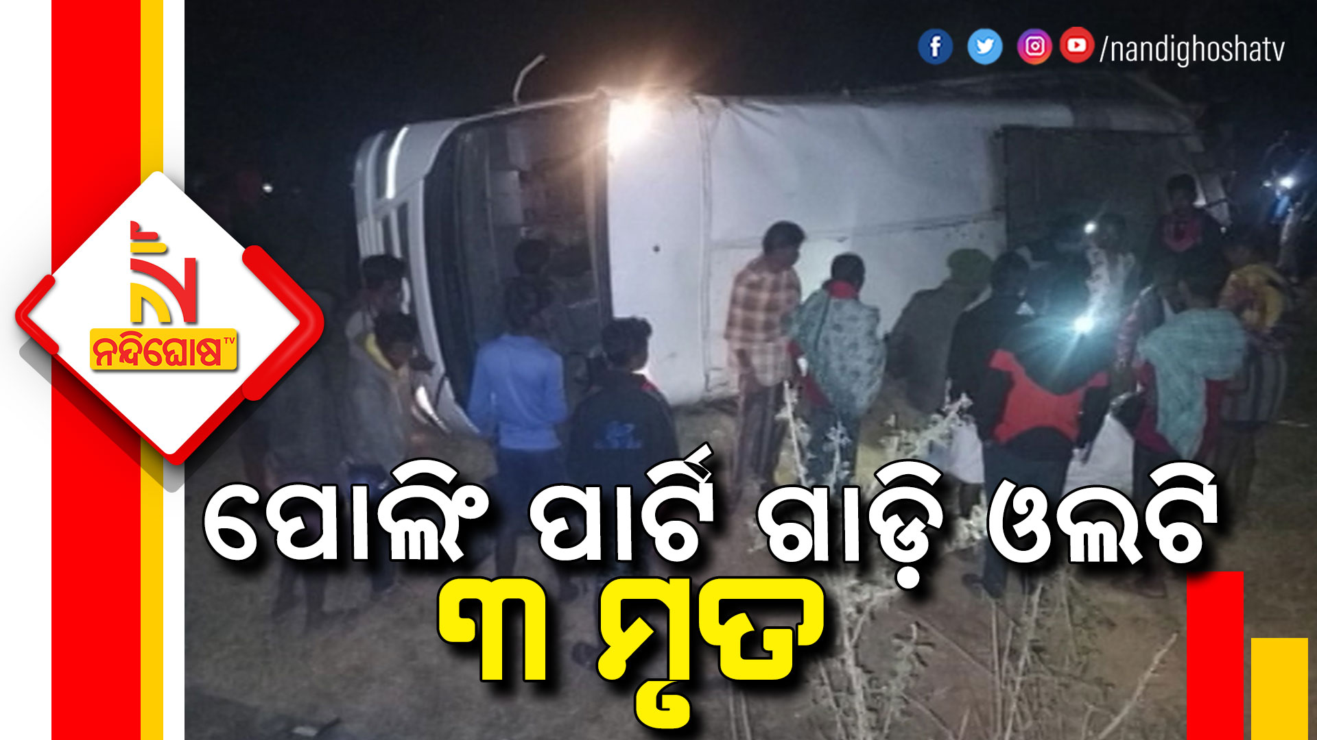 ନବରଙ୍ଗପୁର: ପାପଡ଼ାହାଣ୍ଡି ଅନ୍ତର୍ଗତ ମୋକିଆ ନିକଟବର୍ତ୍ତୀ ସୋରିଷପଦର ଗାଁ ନିକଟରେ ପୋଲିଂ ବସ ଦୁର୍ଘଟଣା ଗ୍ରସ୍ତ । ତିନି ଜଣ ମୃତ, ଆହତମାନଙ୍କୁ ପାପଡ଼ାହାଣ୍ଡି ମେଡିକାଲରେ ଭର୍ତ୍ତି । ନିର୍ବାଚନ କାର୍ଯ୍ୟ ନିମନ୍ତେ କୋଷାଗୁମୁଡା ବ୍ଲକକୁ ଯିବା ସମୟରେ ଦୁର୍ଘଟଣା ସୂଚନା । ପୋଲିସ ବାହିନୀର ଗୃହରକ୍ଷୀ ଓ ହୋମଗାର୍ଡ ରହିଥିବା ସୂଚନା ।