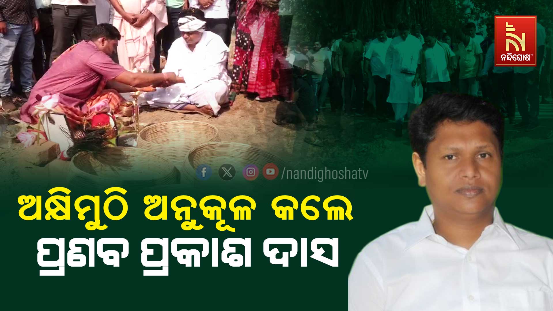 ସମ୍ବଲପୁର : ଆଜି ପବିତ୍ର ଅକ୍ଷୟ ତୃତୀୟା। ସାରା ଓଡ଼ିଶାରେ ପାଳିତ ହେଉଛି ଉତ୍ସବ। ସେପଟେ ସମ୍ବଲପୁର ଜିଲ୍ଲା ରେଙ୍ଗାଲି ଢ଼ୋରୋପାଣିରେ ଅକ୍ଷିମୁଠି ଅନୁକୂଳ କରିଛନ୍ତି ସମ୍ବଲପୁର ବିଜେଡି ସାଂସଦ ପ୍ରାର୍ଥୀ ପ୍ରଣବ ପ୍ରକାଶ ଦାସ। ଶତାଧିକ ଲୋକଙ୍କ ଗହଣରେ ପବିତ୍ର ଅକ୍ଷିମୁଠି ଅନୁକୂଳ କରିଥିଲେ ସାଂସଦ ପ୍ରାର୍ଥୀ ପ୍ରଣବ ପ୍ରକାଶ।