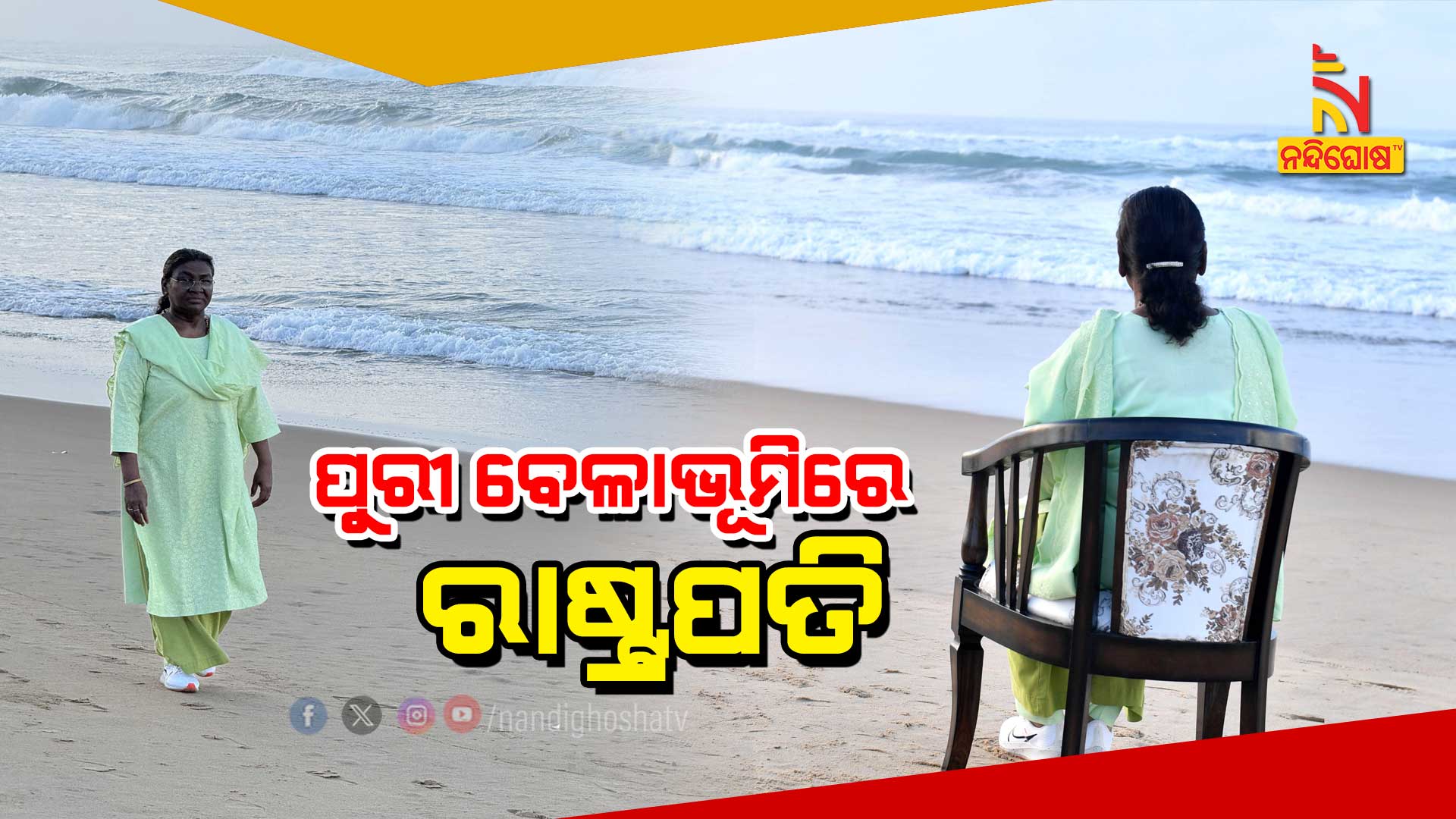 ପୁରୀ: ସ୍ବର୍ଣ୍ଣିମ ବେଳାଭୂମିର ମଜା ନେଲେ ରାଷ୍ଟ୍ରପତି ଦ୍ରୌପଦୀ ମୁର୍ମୁ । ଆଜି ସକାଳୁ ରାଷ୍ଟ୍ରପତିଙ୍କୁ ପୁରୀ ବେଳାଭୂମିରେ ପ୍ରାତଃଭ୍ରମଣ କରୁଥିବା ଦେଖିବାକୁ ମିଳିଛି । ମହାମହିମ ରାଷ୍ଟ୍ରପତି ଏନେଇ ସୋସିଆଲ ମିଡିଆ ଏକ୍ସରେ ପୋଷ୍ଟ କରିଛନ୍ତି।