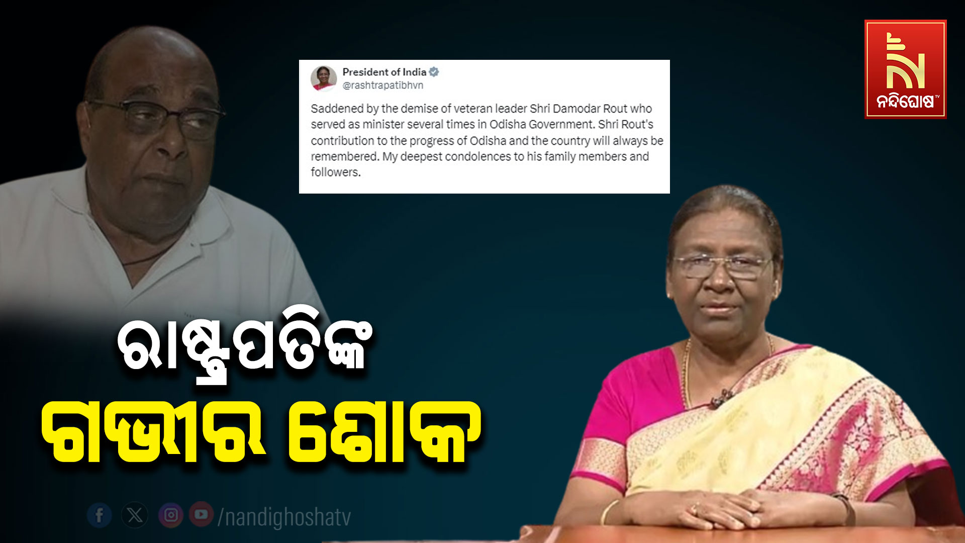 ନନ୍ଦିଘୋଷ ବ୍ୟୁରୋ : ବରିଷ୍ଠ ବିଜେଡି ନେତା ଦାମ ରାଉତଙ୍କ ପରଲୋକରେ ଶୋକ ପ୍ରକାଶ କରିଛନ୍ତି ରାଷ୍ଟ୍ରପତି ଦ୍ରୌପଦୀ ମୁର୍ମୁ। ରାଜ୍ୟର ବିକାଶ ଲାଗି ଦାମୋଦର ରାଉତଙ୍କ ଅବଦାନ ସର୍ବଦା ସ୍ମରଣୀୟ ରହିବ। ଏକାଧିକ ଥର ସେ ବିଧାୟକ ଭାବେ ବିଧାନସଭାକୁ ନିର୍ବାଚିତ ହୋଇଥିଲେ। ବିଭିନ୍ନ ବିଭାଗର ମନ୍ତ୍ରୀ ପଦରେ ରହି ସେବା କରି ଆସିଛନ୍ତି। ପରିବାରବର୍ଗଙ୍କୁ ସମବେଦନା ଜଣାଇଛନ୍ତି ରାଷ୍ଟ୍ରପତି ଦ୍ରୌପଦୀ ମୁର୍ମୁ।