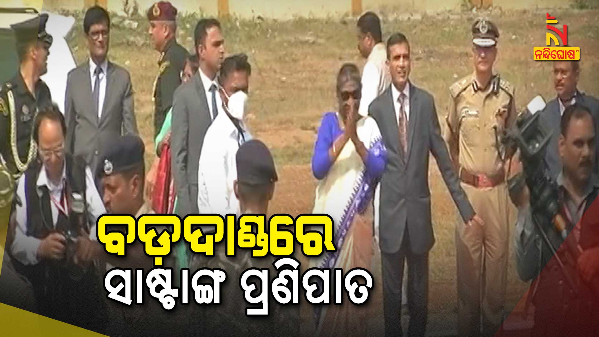 ପୁରୀ: ବଡ଼ଦାଣ୍ଡରେ ମଥା ନୋଇଁଲେ ମହାମହିମ । କାରକେଡ ନୁହେଁ ଶ୍ରୀକ୍ଷେତ୍ରରେ ପହଞ୍ଚି ବଳଗଣ୍ଡି ଛକରୁ ବଡ଼ଦେଉଳକୁ ଚାଲିଚାଲି ଗଲେ ରାଷ୍ଟ୍ରପତି ଦ୍ରୌପଦୀ ମୁର୍ମୁ । ବଡ଼ଦାଣ୍ଡରେ ସାଧାରଣ ଲୋକଟିଏ ପରି ହାତ ଟେକି ମହାବାହୁଙ୍କୁ ପ୍ରଣାମ କରି ସିଂହଦ୍ବାର ସମ୍ମୁଖରେ ପହଞ୍ଚିଥିଲେ । ଦ୍ରୌପଦୀଙ୍କୁ ଦେଖିବାକୁ ଦୁଇ କଡ଼ରେ ଜମିଥିଲା ଖଚାଖଚ ଭିଡ଼ ।