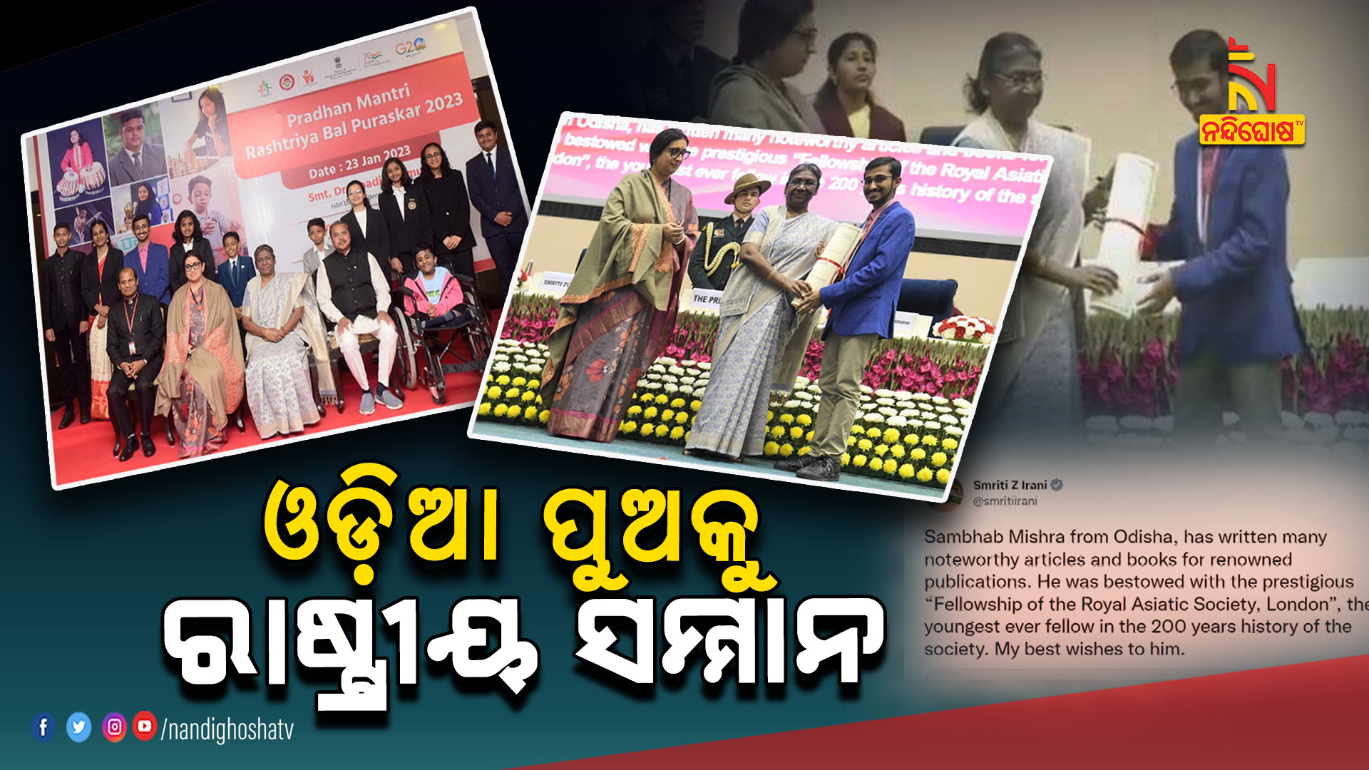 ନୂଆଦିଲ୍ଲୀରେ ଆୟୋଜିତ ସ୍ବତନ୍ତ୍ର କାର୍ଯ୍ୟକ୍ରମରେ ରାଷ୍ଟ୍ରପତି ଦ୍ରୌପଦୀ ମୁର୍ମୁ କୃତୀ ପ୍ରତିଭାଙ୍କୁ ରାଷ୍ଟ୍ରୀୟ ବାଲ ପୁରସ୍କାର ପ୍ରଦାନ କରିଛନ୍ତି। କଳା, ସଂସ୍କୃତି କ୍ଷେତ୍ରରେ ଅବଦାନ ପାଇଁ ଓଡ଼ିଶାର ସମ୍ଭବ ମିଶ୍ରଙ୍କୁ ଚଳିତ ବର୍ଷର ରାଷ୍ଟ୍ରୀୟ ବାଲ ପୁରସ୍କାର ପ୍ରଦାନ କରାଯାଇଛି।