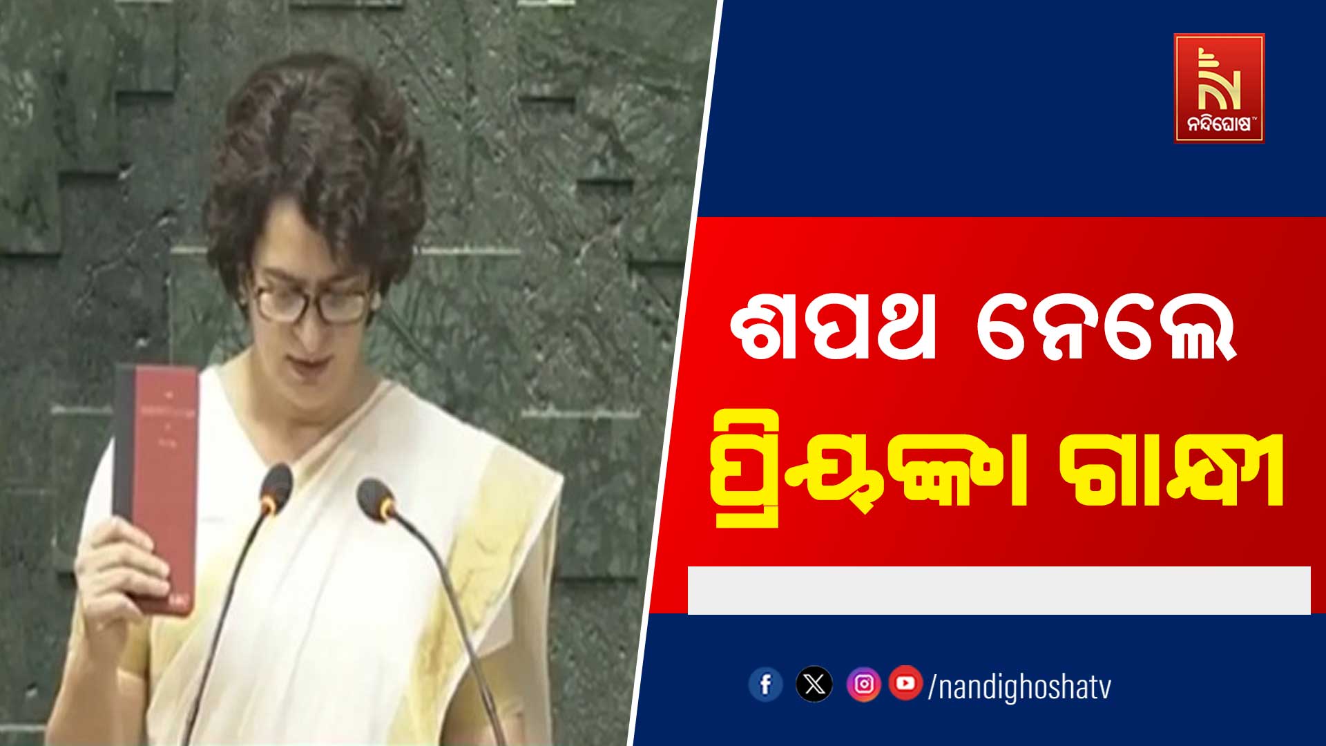 ନୂଆଦିଲ୍ଲୀ: କଂଗ୍ରେସ ନେତା ପ୍ରିୟଙ୍କା ଗାନ୍ଧୀ ଲୋକସଭା ସାଂସଦ ଭାବେ ଆଜି ଶପଥ ଗ୍ରହଣ କରିଛନ୍ତି । ସଦନର ସଦସ୍ୟତା ପାଇଁ ସେ ଶପଥ ନେଇଛନ୍ତି । ଏହି ସମୟରେ ତାଙ୍କ ହାତରେ ସମ୍ବିଧାନର ଲାଲ ବହି ଦେଖିବାକୁ ମିଳିଥିଲା । ତାଙ୍କର ଏହି ହାବଭାବରୁ ସ୍ପଷ୍ଟ ହୋଇଗଲା ଯେ ସେ ଲୋକସଭାରେ ଭାଇ ରାହୁଲ ଗାନ୍ଧୀଙ୍କ ଭଳି ନିଜ ଭୁମିକା ଗ୍ରହଣ କରିବେ । କେରଳର ୱାଇନାଡ ଉପନିର୍ବାଚନରେ ବାଜିମାତ୍ କରିଥିଲେ ପ୍ରିୟଙ୍କା । ଏହି ଆସନରୁ ବାଇ ରାହୁଲ ନିର୍ବାଚନ ଜିତିଥିଲେ । କିନ୍ତୁ ରାହୁଲ ଦୁଇଟି ଆସନରୁ ବିଜୟ ଲାଭ କରିଥିବାରୁ ରାହୁଲ ଗାନ୍ଧୀ ଏହି ଆସନ ଛାଡି ଦେଇଥିଲେ । ଯାହା ପରେ ଏଠାରେ ଉପନିର୍ବାଚନରେ ପ୍ରିୟଙ୍କା ଲୋକସଭାକୁ ନିର୍ବାଚିତ ହୋଇଛନ୍ତି ।