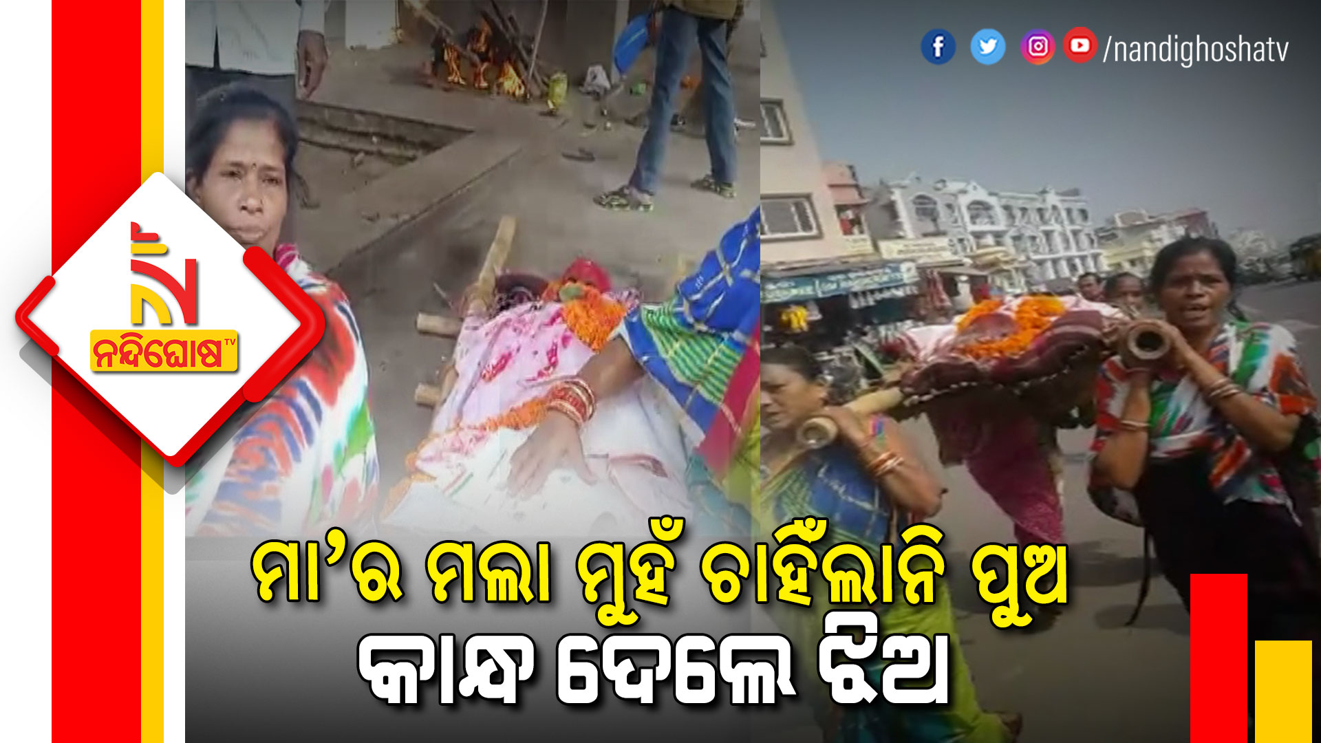 ପୁରୀ: ପର କରିଦେଲା ପୁଅ । ଏପରିକି ମାଆର ମୃତଦେହ କାନ୍ଧେଇବାକୁ ମଧ୍ୟ ଆସିଲାନି । ଶେଷରେ ମାଆକୁ କାନ୍ଧ ଦେଇ ସ୍ୱର୍ଗଦ୍ୱାର ନେଲେ ଚାରି ଝିଅ। ମାଆ ମୃତଦେହକୁ ଚାରି କିଲୋମିଟର କାନ୍ଧେଇ ଚାଲି ଚାଲି ଯାଇଥିଲେ ସ୍ୱର୍ଗଦ୍ୱାର। ନୂଆବର୍ଷରେ ଏଭଳି ହୃଦୟବିଦାରକ ଦୃଶ୍ୟ ପୁରୀରେ ଦେଖିବାକୁ ମିଳିଛି ।