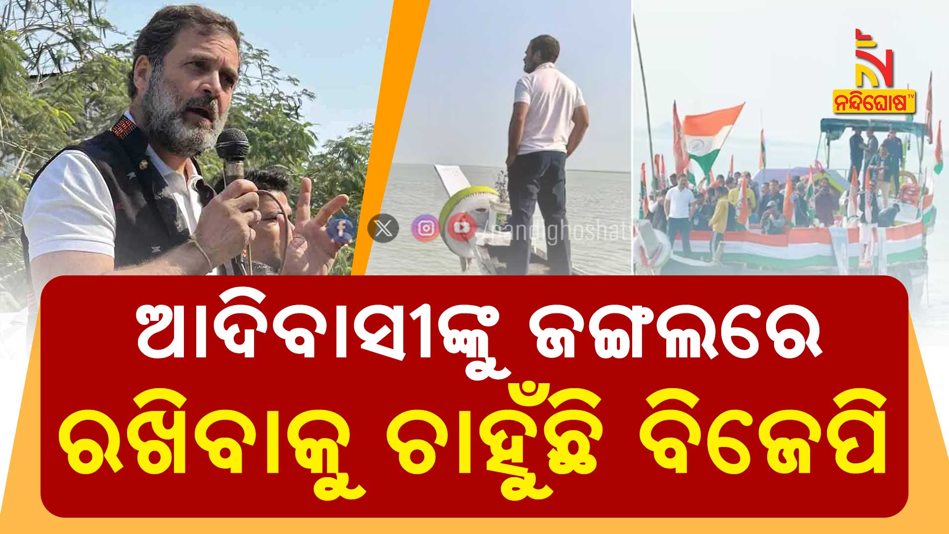 ରାଜ୍ୟ ବିଜେପି ସରକାରଙ୍କୁ ଦୋଷ ଦେଇ ରାହୁଲ କହିଛନ୍ତି, ବିଜେପି ଆଦିବାସୀମାନଙ୍କୁ ଜଙ୍ଗଲରେ ସୀମିତ ରଖିବାକୁ ଚାହୁଁଛି ଏବଂ ସେମାନଙ୍କ ପିଲାମାନଙ୍କୁ ସ୍କୁଲ, ବିଶ୍ୱବିଦ୍ୟାଳୟ ଯିବା, ଇଂରାଜୀ ଶିଖିବା ଏବଂ ବ୍ୟବସାୟ କରିବାର ସୁଯୋଗରୁ ବଞ୍ଚିତ କରିବାକୁ ଚାହୁଁଛି । କିନ୍ତୁ ଆମେ ଚାହୁଁଛୁ, ଆପଣଙ୍କର ଯାହା ଅଛି ଆପଣଙ୍କୁ ଫେରାଇ ଦିଆଯାଉ । ଆପଣଙ୍କର ଜଳ, ଜମି ଏବଂ ଜଙ୍ଗଲ ଆପଣଙ୍କର ହେବା ଉଚିତ୍ ।