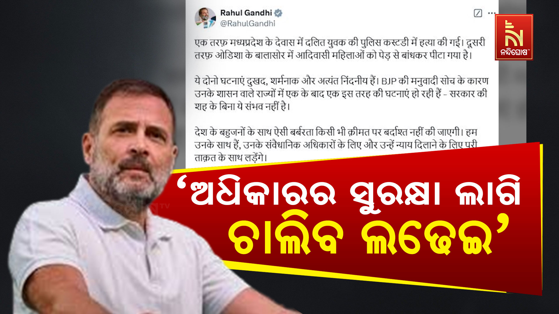 ନୂଆଦିଲ୍ଲୀ : ବାଲେଶ୍ବର ରେମୁଣା ଅଞ୍ଚଳରେ ଧର୍ମ ପରିବର୍ତ୍ତନକୁ କେନ୍ଦ୍ର କରି ଆଦିବାସୀ ମହିଳାଙ୍କୁ ଗଛରେ ବାନ୍ଧି ମାଡ ମାରିବା ଘଟଣା। ଉଦବେଗ ପ୍ରକାଶ କରିଛନ୍ତି ବିରୋଧୀ ଦଳ ନେତା ରାହୁଲ ଗାନ୍ଧି। ଏହି ଘଟଣା ଏବେ ଦେଶବ୍ଯାପୀ ଚର୍ଚ୍ଚାର କାରଣ ହୋଇଛି। ରାହୁଲ କହିଛନ୍ତି- ମଧ୍ଯପ୍ରଦେଶ ଦେବାସରେ ଜଣେ ଦଳିତ ଯୁବକଙ୍କୁ ପୋଲିସ ହେପାଜତରେ ହତ୍ଯା କରାଗଲା। ସେପଟେ ଓଡ଼ିଶାରେ ବି ଏପରି ଏକ ଦୁର୍ଭାଗ୍ଯଜନକ ଘଟଣା ଘଟିଛି। ଦୁଇଟି ଯାକ ଘଟଣା ଅତ୍ଯନ୍ତ ନିନ୍ଦନୀୟ। ବିଜେପିର ମନୁବାଦୀ ଚିନ୍ତାଧାରାର ଏସବୁ ଘଟଣା ହେଉଛି ପରିପ୍ରକାଶ। ସରକାରୀ ସ୍ତରରେ ପ୍ରୋତ୍ସାହନ ବିନା ଏସବୁ ଘଟଣା ଘଟି ନଥାଏ। ଦେଶରେ ବହୁଜନମାନଙ୍କ ପ୍ରତି ହେଉଥିବା ଅତ୍ଯାଚାରକୁ କୌଣସି ପ୍ରକାରେ ବରଦାସ୍ତ କରାଯିବ ନାହିଁ। ସେମାନଙ୍କ ସହ ଆମ୍ଭେମାନେ ରହିଛୁ ବୋଲି କହିଛନ୍ତି ରାହୁଲ। ସେମାନଙ୍କ ସାମ୍ବିଧାନିକ ଅଧିକାରର ସୁରକ୍ଷା ଓ ସେମାନଙ୍କୁ ନ୍ୟାୟ ପ୍ରଦାନ ଲାଗି ସେ ସଂଗ୍ରାମ କରିବେ ବୋଲି କହିଛନ୍ତି।