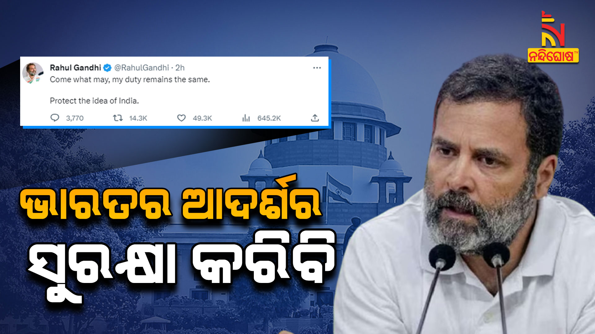 କୋର୍ଟଙ୍କ ରାୟ ପରେ ରାହୁଲଙ୍କ ପ୍ରଥମ ଟୁଇଟ୍ “ଯାହାବି ଘଟୁ, ମୋ କର୍ତ୍ତବ୍ୟ ସମାନ”
