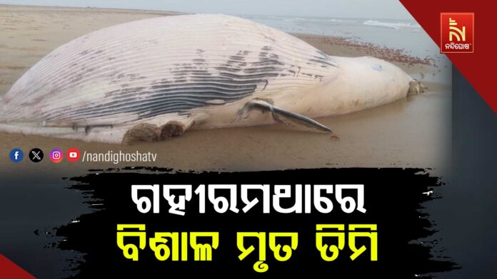 ରାଜନଗର : ରାଜନଗର ବନଖଣ୍ଡ ଗହୀରମଥା ସାମୁଦ୍ରିକ ଅଭୟାରଣ୍ୟରେ ବିଶାଳ ମୃତ ତିମିକୁ ଦେଖିବା ପାଇଁ ମିଳିଛି । ମାଦେଳି କ୍ୟାମ୍ପ ନିକଟ ବେଳାଭୂମିରେ ଲାଗିଛି ୩୨ ଫୁଟ ଲମ୍ବ ୧୭ ଫୁଟ ମାଟେଇର ମୃତ ତିମି । ମୃତ୍ୟୁର କାରଣ ହୋଇନି ସ୍ପଷ୍ଟ । ବ୍ରେଡସ ପ୍ରଜାତିର ମୃତ ତିମିର ପୋଷ୍ଟମଟମ ପରେ ମୃତ୍ୟୁର କାରଣ ଜଣା ପଡିବ ବୋଲି ବନବିଭାଗ ସୂଚନା ଦେଇଛି ।