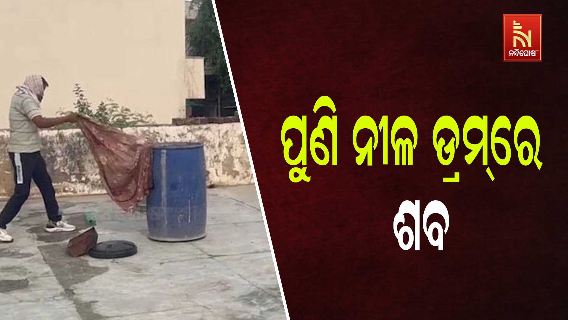 ନନ୍ଦିଘୋଷ ବ୍ୟୁରୋ : ପୁଣି ନୀଳ ଡ୍ରମକୁ ନେଇ ଚାଞ୍ଚଲ୍ୟ । ଘରର ଛାତ ଉପରେ ନୀଳ ପାଣି ଡ୍ରମରେ ମିଳିଲା ଯୁବକଙ୍କ ମୃତ ଦେହ । ପତ୍ନୀ ଏବଂ ଛୁଆ ଗାଏବ । ରାଜସ୍ଥାନର ଖେରଥଲ-ତିଜାରା ଜିଲାର କିଶନଗଡ଼ବାସ ସହରରେ ଏକ ହୃଦୟ ବିଦାରକ ଘଟଣା ସାମ୍ନାକୁ ଆସିଛି। ଘରର ଛାତ ଉପରେ ରଖାଯାଇଥିବା ଏକ ଡ୍ରମରେ ଜଣେ ବ୍ୟକ୍ତିଙ୍କ ମୃତଦେହ ମିଳିଥିବା ବେଳେ ତାଙ୍କ ସ୍ତ୍ରୀ ଏବଂ ୩ ପିଲା ରହସ୍ୟମୟ ଭାବରେ ନିଖୋଜ ହୋଇଯାଇଥିବା ଜଣାପଡିଛି।