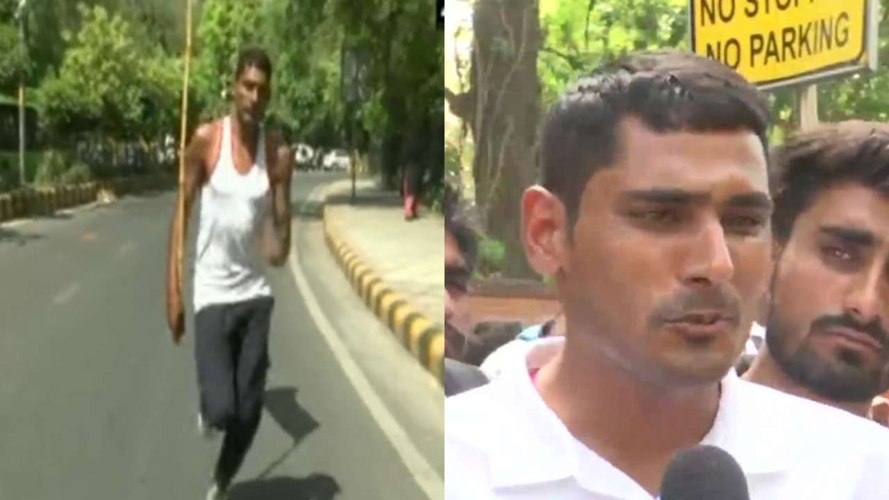 #WATCH दिल्ली: भारतीय सेना में शामिल होने के लिए इच्छुक एक युवा राजस्थान के सीकर से दिल्ली में एक प्रदर्शन में शामिल होने के लिए 50 घंटे में 350 किलोमीटर दौड़कर पहुंचा। pic.twitter.com/rpRVH8k4SI