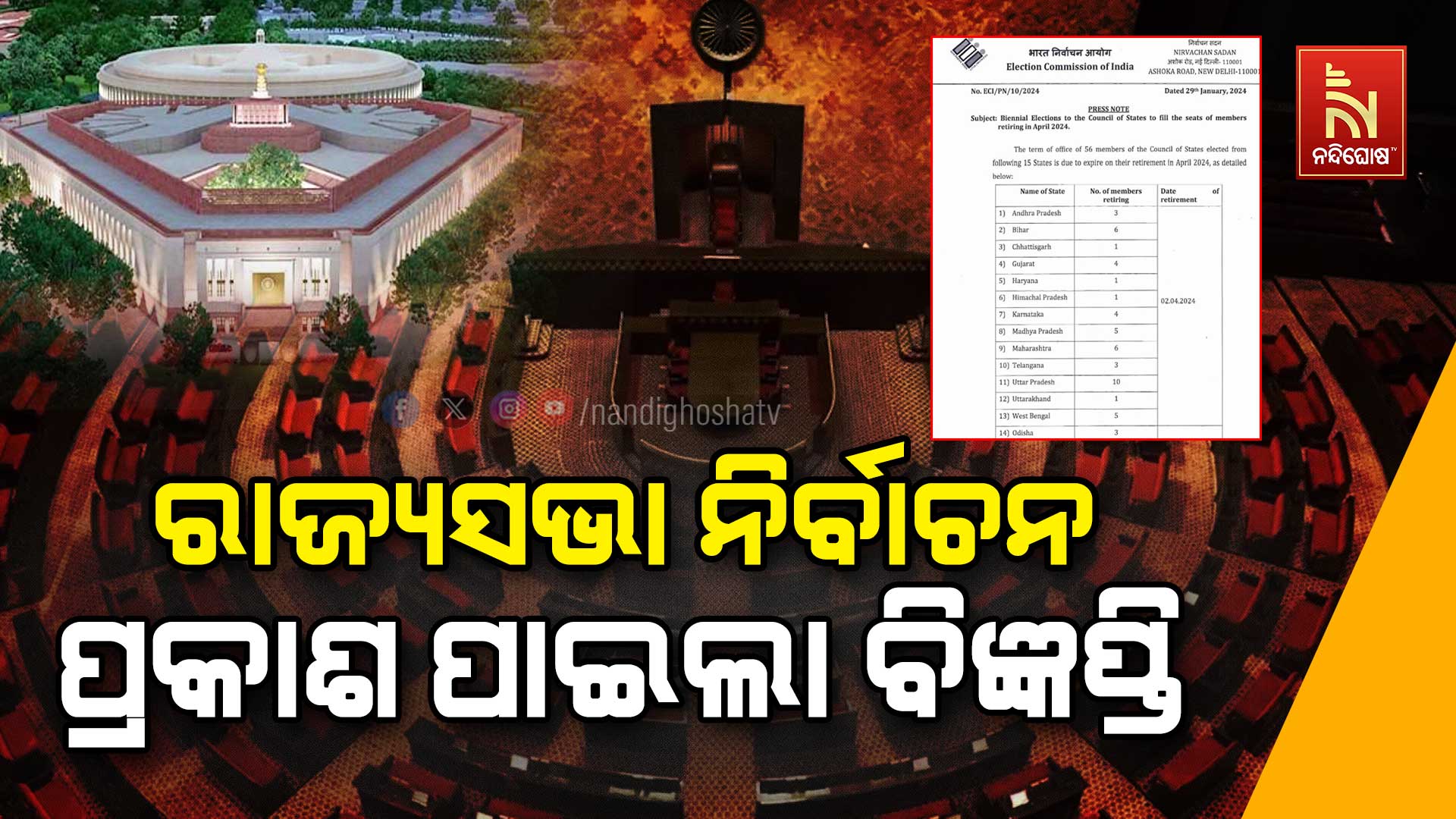 ରାଜ୍ୟସଭା ନିର୍ବାଚନ ପାଇଁ ପ୍ରକାଶ ପାଇଲା ବିଜ୍ଞପ୍ତି