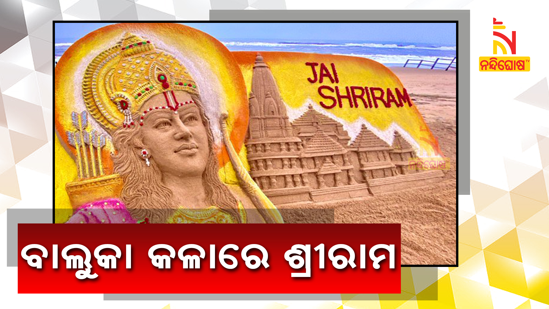 ପୁରୀ: ଅଯୋଧ୍ୟାରେ ରାମ ମନ୍ଦିର ଭୂମି ପୂଜନକୁ ନେଇ ଏକ ସୁନ୍ଦର ବାଲୁକା କଳା ପ୍ରସ୍ତୁତ କରିଛନ୍ତି ବିଶିଷ୍ଟ ବାଲୁକାଶିଳ୍ପୀ ପଦ୍ମଶ୍ରୀ ଶ୍ରୀସୁଦର୍ଶନ ପଟ୍ଟନାୟକ । ପୁରୀ ବେଳାଭୂମିରେ ସେ ତିଆରି କରିଥିବା ବାଲୁକାକଳାରେ ଭଗବାନ ଶ୍ରୀରାମଚନ୍ଦ୍ରଙ୍କ ପ୍ରତିମୂର୍ତ୍ତୀକୁ ସ୍ଥାନ ଦିଆଯାଇଛି । ଏହାସହ ଭବ୍ୟ ମନ୍ଦିରର ପ୍ରତିକୃତି ମଧ୍ୟ ବାଲୁକା ସାହାର୍ଯ୍ୟରେ ସେ ନିର୍ମାଣ କରିଛନ୍ତି। ୫ ଫୁଟ ଉଚ୍ଚତା ରହିଛି ଏହି ବାଲୁକାକଳାଟି ଅତି ସୁନ୍ଦର ଦିଶୁଥିବା ବେଳେ ଖୁବ ମନମୁଗ୍ଧକର ହୋଇଛି ।