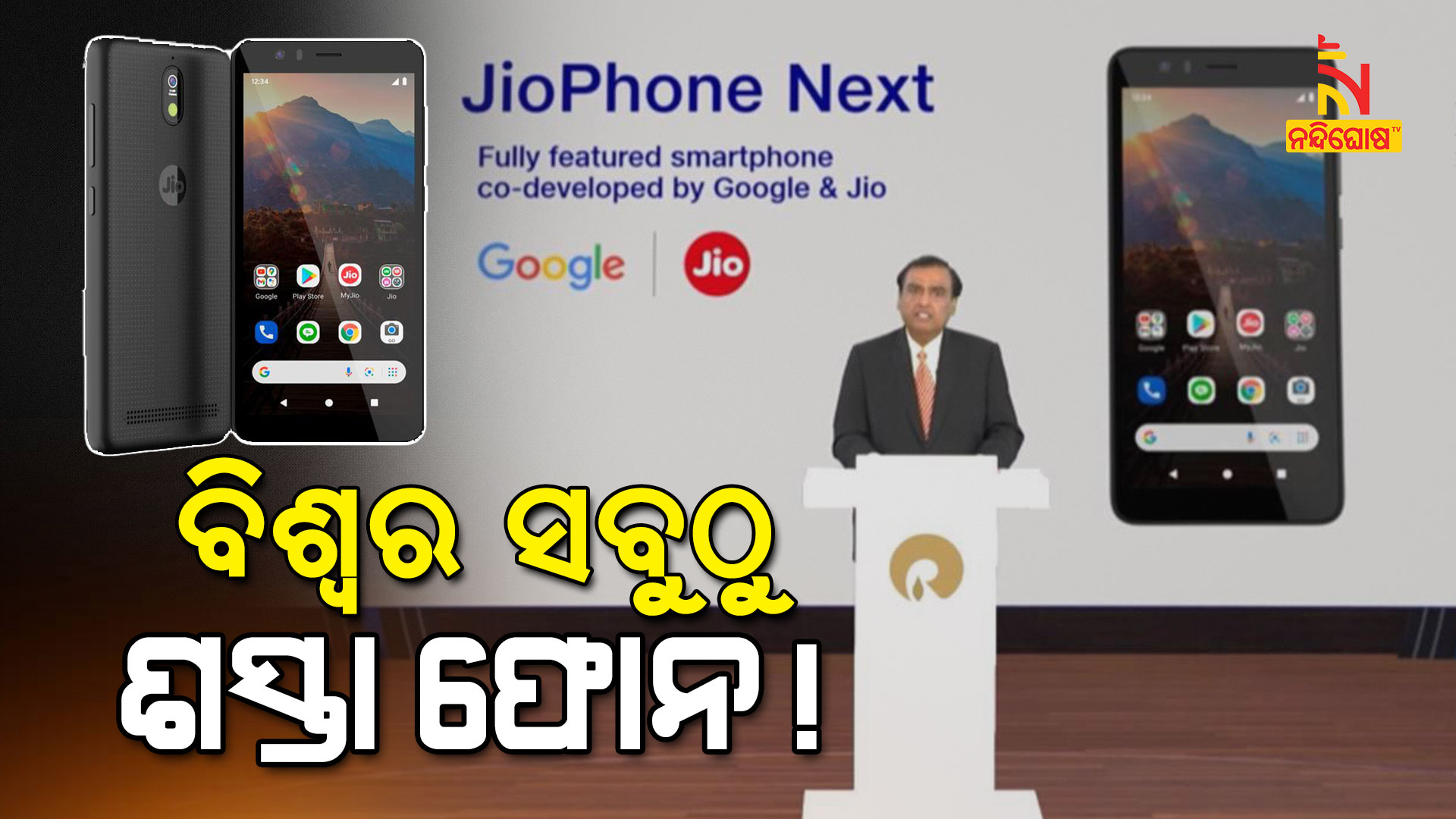 ସେପ୍ଟେମ୍ବର ୧୦ ତାରିଖରୁ ବଜାରରେ ଉପଲବ୍ଧ ହେବ Jio Phone Next । କେବଳ ଭାରତରେ ନୁହେଁ ବିଶ୍ୱର ସବୁଠୁ ଶସ୍ତା ସ୍ମାର୍ଟଫୋନ୍ ଜିଓଫୋନ୍ ହେବ ବୋଲି କମ୍ପାନୀ ପକ୍ଷରୁ କୁହାଯାଇଛି । ଏହି କାର୍ଯ୍ୟକ୍ରମରେ ଗୁଗୁଲ୍ ସିଇଓ ସୁନ୍ଦର ପିଚାଇ ମଧ୍ୟ ଭର୍ଚୁଆଲ୍ ଜରିଆରେ ଅଂଶ ଗ୍ରହଣ କରିଥିଲେ।