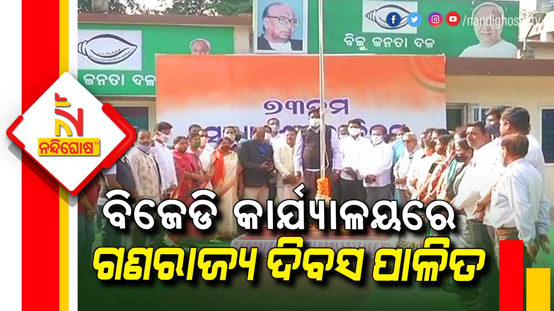 ଭୁବନେଶ୍ୱର: ଆଜି ସାରା ଦେଶରେ ୭୩ତମ ସାଧାରଣତନ୍ତ୍ର ଦିବସ ପାଳିତ ହୋଇଛି । ବିଜେଡି ରାଜ୍ୟ କାର୍ଯ୍ୟାଳୟରେ ମଧ୍ୟ ପାଳିତ ହୋଇଛି ୭୩ତମ ସାଧାରଣତନ୍ତ୍ର ଦିବସ । ବିଜେଡି ରାଜ୍ୟ କାର୍ଯ୍ୟାଳୟରେ ରାଜ୍ୟ ଯୋଜନାବୋର୍ଡ ଉପାଧ୍ୟକ୍ଷ ସଞ୍ଜୟ ଦାସବର୍ମା ପତାକା ଉତ୍ତୋଳନ କରିଥିଲେ । ଏହି ସମୟରେ ବିଜେଡି ସାଂଗଠନିକ ସଂପାଦକ ପ୍ରଣବ ପ୍ରକାଶ ଦାସ ଉପସ୍ଥିତ ଥିଲେ । ଏହା ସହିତ ଦଳର ବିଧାୟକ, ବରିଷ୍ଠ ନେତା ଓ କର୍ମୀମାନେ ଏକତ୍ରିତ ହୋଇ ୭୩ ତମ ସାଧାରଣତନ୍ତ୍ର ଦିବସ ପାଳନ କରିଥିଲେ ।