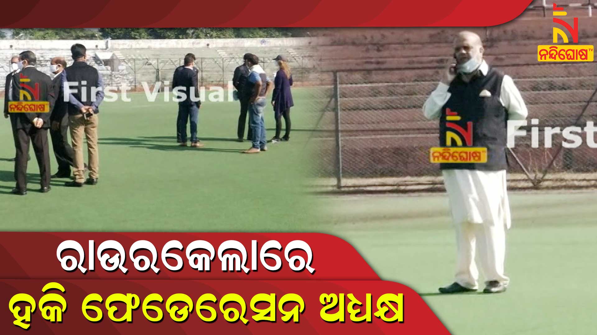 ରାଉରକେଲା ହକି ବିଶ୍ୱକପ ୨୦୨୩: ଗ୍ରାଉଣ୍ଡର ସ୍ଥିତି ପରଖୁଛନ୍ତି ହକି ଫେଡେରେସନର ଅଧ୍ୟକ୍ଷ