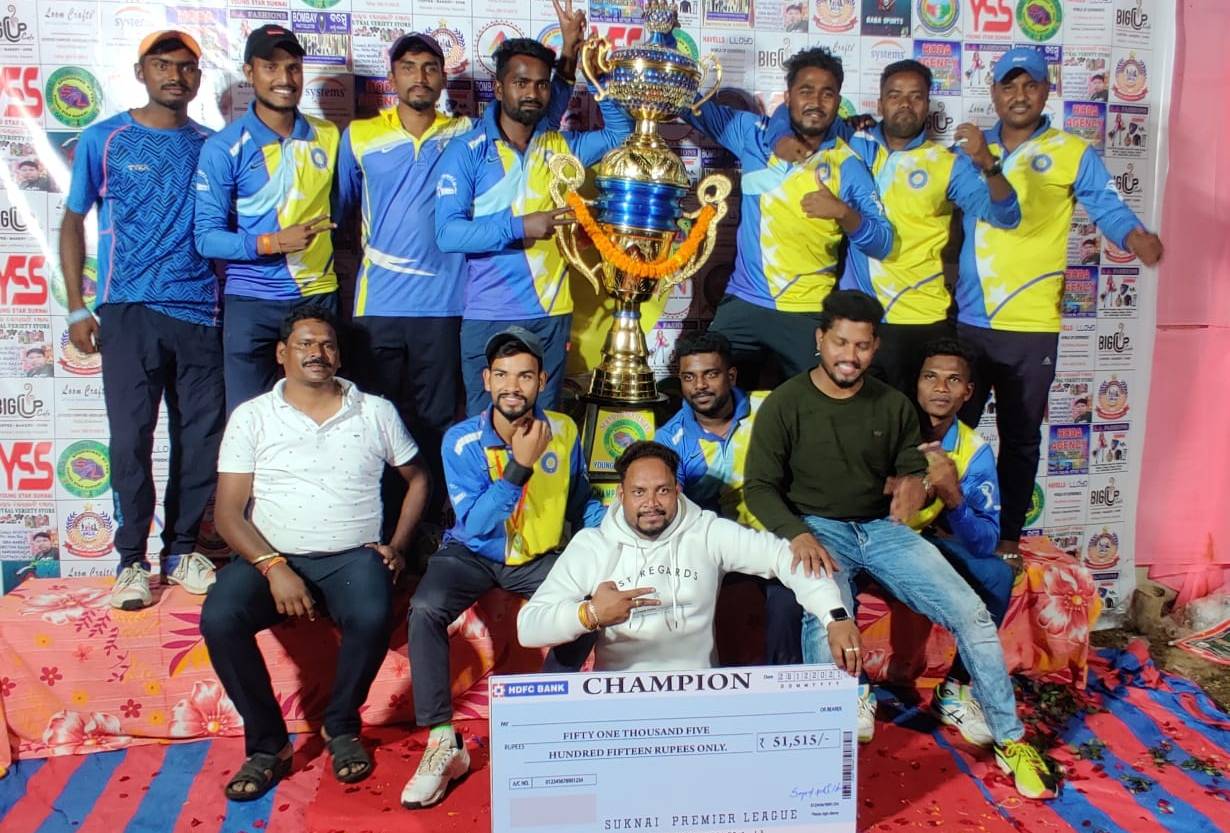 ନିଶ୍ଚିନ୍ତକୋଇଲି : ୟଙ୍ଗ ଷ୍ଟାର ସୁକନାଇ ଦ୍ଵାରା ଆୟୋଜିତ ସୁକାନାଇ ପ୍ରୀମିୟର ଲିଗକୁ ବାଜି ମାରିଛି ସମ୍ବଲପୁର। ଏମ.ଏମ.ସି.ସି ସମ୍ବଲପୁର ଏବଂ ପକୱାନ ଜଗତସିଂହପୁର ମଧ୍ୟରେ ହୋଇଥିବା ମ୍ୟାଚରେ ୩୫ ରନରେ ବିଜୟ ହାସଲ କରିଛି ସମ୍ବଲପୁର। ପ୍ରଥମେ ଟସ୍ ଜିତି ସମ୍ବଲପୁର ବ୍ୟାଟିଂ ନିଷ୍ପତ୍ତି ନେଇଥିଲା । ବ୍ୟାଟିଂ କରି ୮ ଓଭରରେ ୩ ୱିକେଟ୍ ହରାଇ ୯୨ ରନ କରିଥିଲା ସମ୍ବଲପୁର। ଏହାର ପ୍ରତିପକ୍ଷରେ ଜଗତସିଂହପୁର ୬ ୱିକେଟ୍ ହରାଇ ୫୭ ରନ କରିଥିଲା। ସଞ୍ଜୟ ମ୍ୟାନ ଅଫ ଦି ମ୍ୟାଚ୍ ହୋଇଥିବା ବେଳେ ଦେବାଶିଷ ହୋଇଥିଲେ ମ୍ୟାନ ଅଫ ଦ ଟୁର୍ଣ୍ଣାମେଣ୍ଟ। ଏସ. କେ. ଫିରୋଜ ଏବଂ ଏସ.କେ ରିହାନ ଅଲ୍ଲୀ ମ୍ୟାଚ୍ ପରିଚାଳନା କରିଥିଲେ।