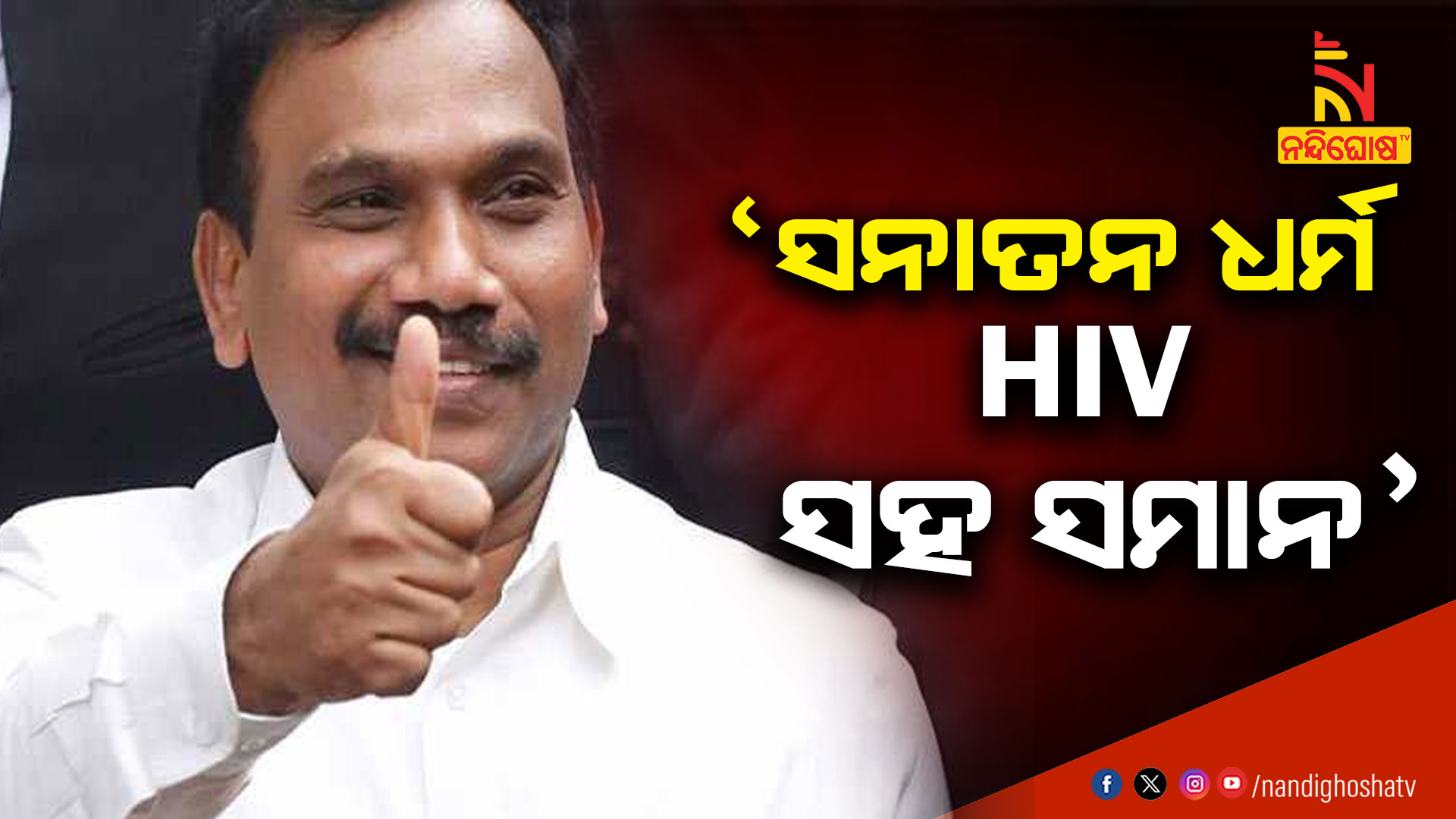 ନୂଆଦିଲ୍ଲୀ: ଉଦୟନିଧିଙ୍କ ପରେ ଡିଏମକେ ସାଂସଦଙ୍କ ବିବାଦୀୟ ବୟାନ । ସନାତନ ଧର୍ମକୁ HIV ସହ କଲେ ତୁଳନା । କହିଲେ ସନାତନ ଧର୍ମ HIV ଏବଂ କୁଷ୍ଠ ରୋଗ ଭଳି ସାମାଜିକ କଳଙ୍କ ରୋଗ ବୋଲି ଜାଣିବା ଉଚିତ୍ । ଏ. ରାଜା କହିଛନ୍ତି କି, ଉଦୟନିଧି ଡେଙ୍ଗୁ ଏବଂ ମ୍ୟାଲେରିଆ ସହ ସନାତନ ଧର୍ମକୁ ତୁଳନା କରି ନରମ ବୟାନ ଦେଇଛନ୍ତି । ବାସ୍ତବରେ କିନ୍ତୁ ଏହା HIV ଭଳି ସାମାଜିକ କଳଙ୍କ ରୋଗ ଭଳି । ଏହି ବୟାନ ପରେ ରାଜନୈତିକ ମହଲରେ ହଟଚମଟ ସୃଷ୍ଟି ହୋଇଛି । ପୂର୍ବରୁ ଉଦୟନିଧି ଡେଙ୍ଗୁ ଏବଂ ମ୍ୟାଲେରିଆ ସହ ସନାତନ ଧର୍ମକୁ ତୁଳନା କରିଥିବାବେଳେ ଘଟଣାକୁ ନେଇ ୟୁପିରେ ମାମଲା ମଧ୍ୟ ରୁଜୁ ହୋଇଛି । ସେପଟେ ବିରୋଧୀମାନେ ବାରମ୍ବାର ଅଭିଯୋଗ କରୁଛନ୍ତି କି, ବିଜେପି ସରକାର ଧର୍ମ ନାଁରେ ରାଜନୀତି କରୁଛନ୍ତି ।