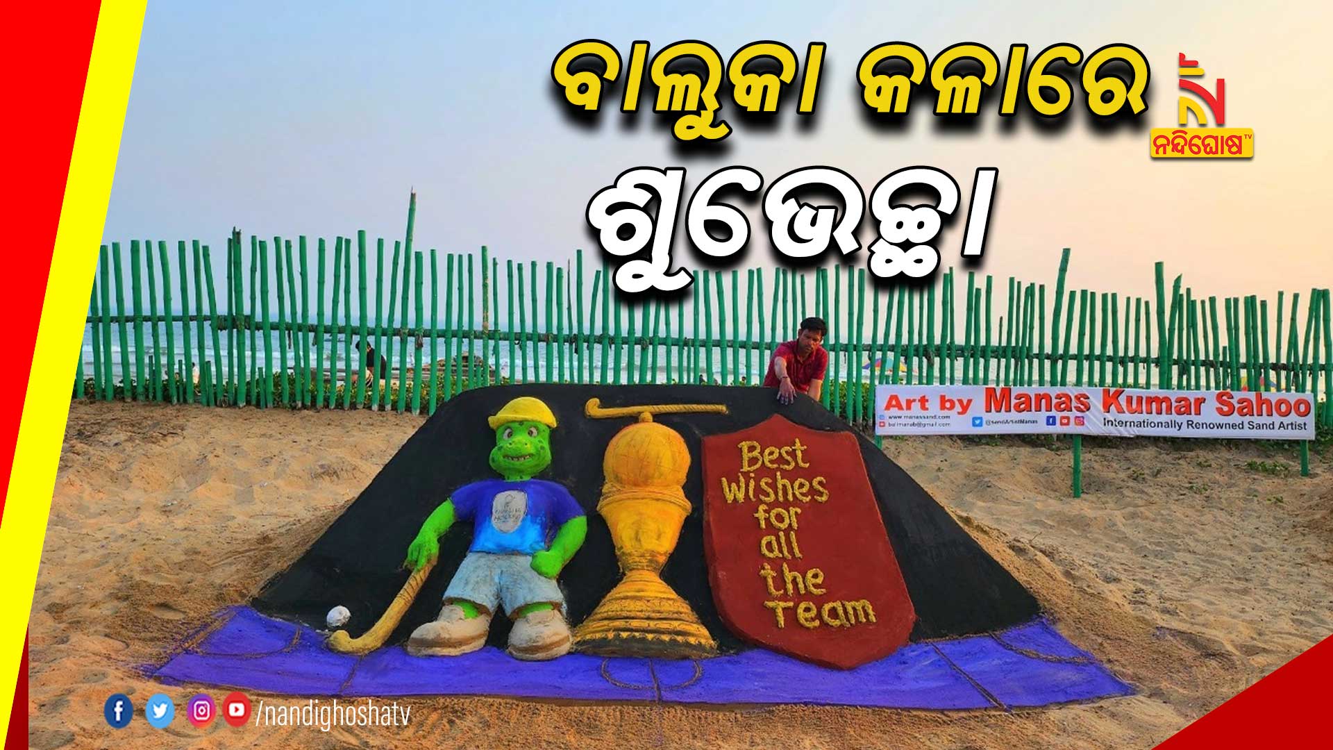 ଏହି ବାଲୁକା କଳାରେ “Best Wishes for all the Team” ଉଲ୍ଲେଖ କରିଛନ୍ତି ମାନସ । ଆଜିଠୁ ହକି ବିଶ୍ବକପ ଆରମ୍ଭ ହେବାକୁ ଯାଉଛି । ଟୁର୍ଣ୍ଣାମେଣ୍ଟରେ ଡିଫେଣ୍ଡିଂ ଚାମ୍ପିଅନ୍ ଆର୍ଜେଣ୍ଟିନା ଓ ସାଉଥ ଆଫ୍ରିକା ମଧ୍ୟରେ ପ୍ରଥମ ଟକ୍କର ହେବ ।