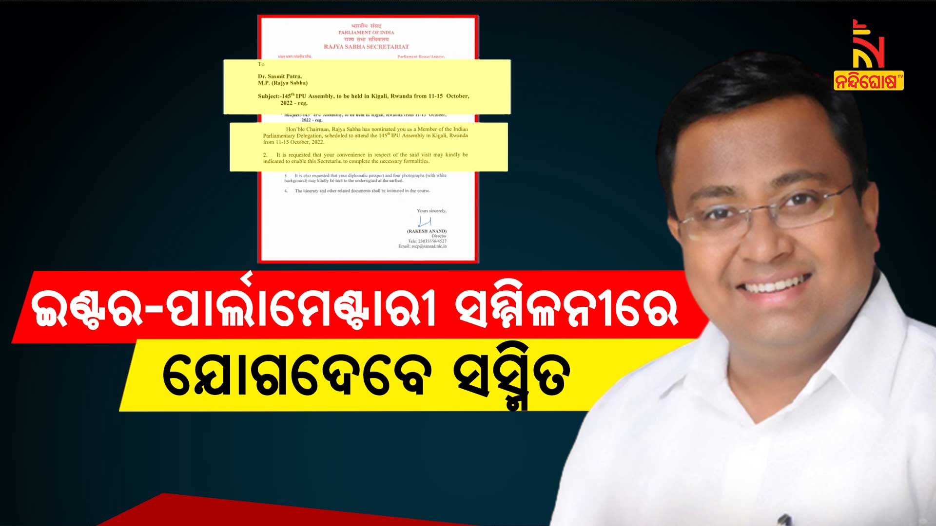ଭୁବନେଶ୍ୱର: ଭାରତ ପକ୍ଷରୁ ବିଦେଶ ଗସ୍ତ କରିବେ ସସ୍ମିତ ପାତ୍ର । ଆସନ୍ତା ୧୧ରୁ ୧୫ ତାରିଖ ଯାଏ ରାଓ୍ୱଣ୍ଡାର କିଗାଲିରେ ଅନୁଷ୍ଠିତ ହେବ ୧୪୫ତମ ଇଣ୍ଟର-ପାର୍ଲାମେଣ୍ଟାରୀ ୟୁନିଅନ ଆସେମ୍ବ୍ଲି । ଏହି ସମ୍ମିଳନୀରେ ଯୋଗଦେବେ ସାଂସଦ ଡକ୍ଟର ସସ୍ମିତ ପାତ୍ର ।