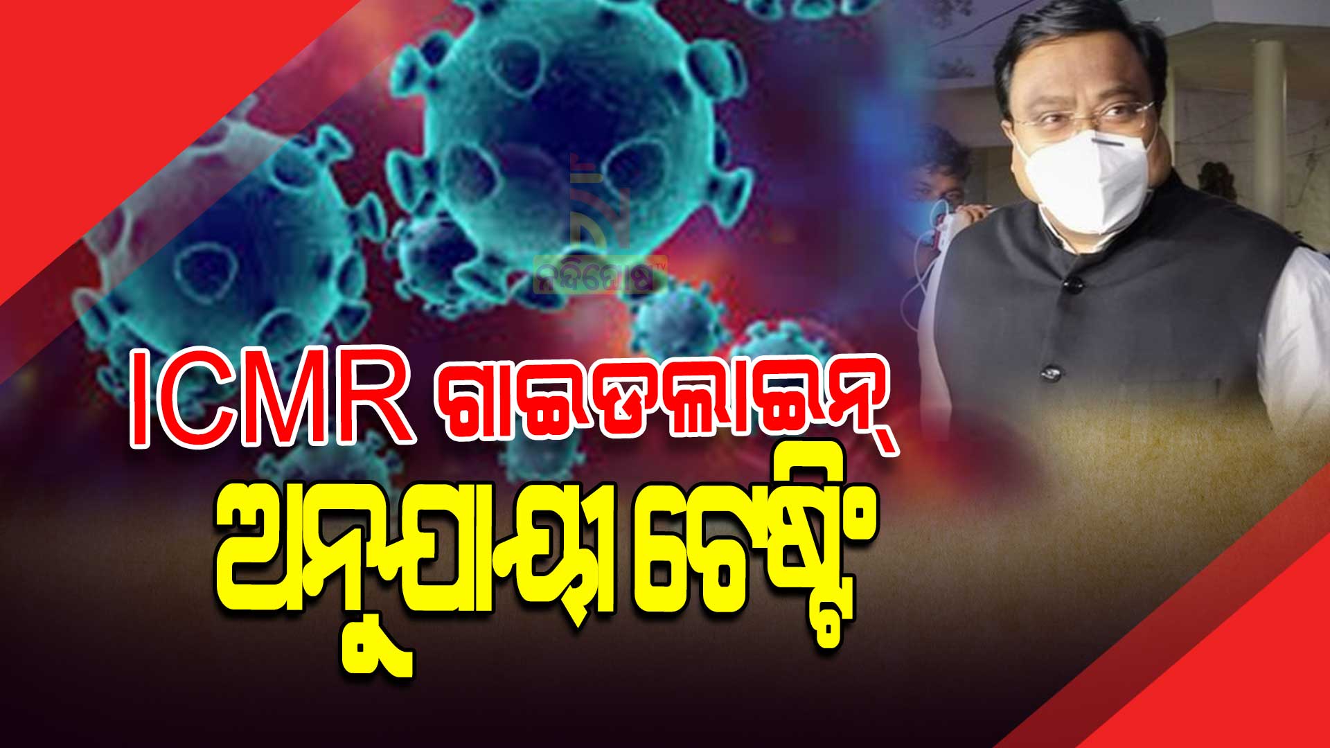 ଭୁବନେଶ୍ୱର: କେନ୍ଦ୍ର ସରକାରଙ୍କ ସଂସ୍ଥା ଆଇସିଏମ୍‌ଆର ପକ୍ଷରୁ କୋଭିଡ-୧୯ ଟେଷ୍ଟିଂ ନେଇ ଗାଇଡଲାଇନ ଜାରି କରାଯାଇଛି । ସେହି ଗାଇଡଲାଇନ୍‌ରେ କରୋନା ଲକ୍ଷଣ ଥିବା ରୋଗୀଙ୍କ ଚିକିତ୍ସା କରିବାକୁ ନିର୍ଦ୍ଦେଶ ରହିଛି । ଏହି ଗାଇଡଲାଇନ୍‌ ଅନୁଯାୟୀ ରାଜ୍ୟରେ କୋଭିଡ ଟେଷ୍ଟିଂ କରାଯାଉଛି ।