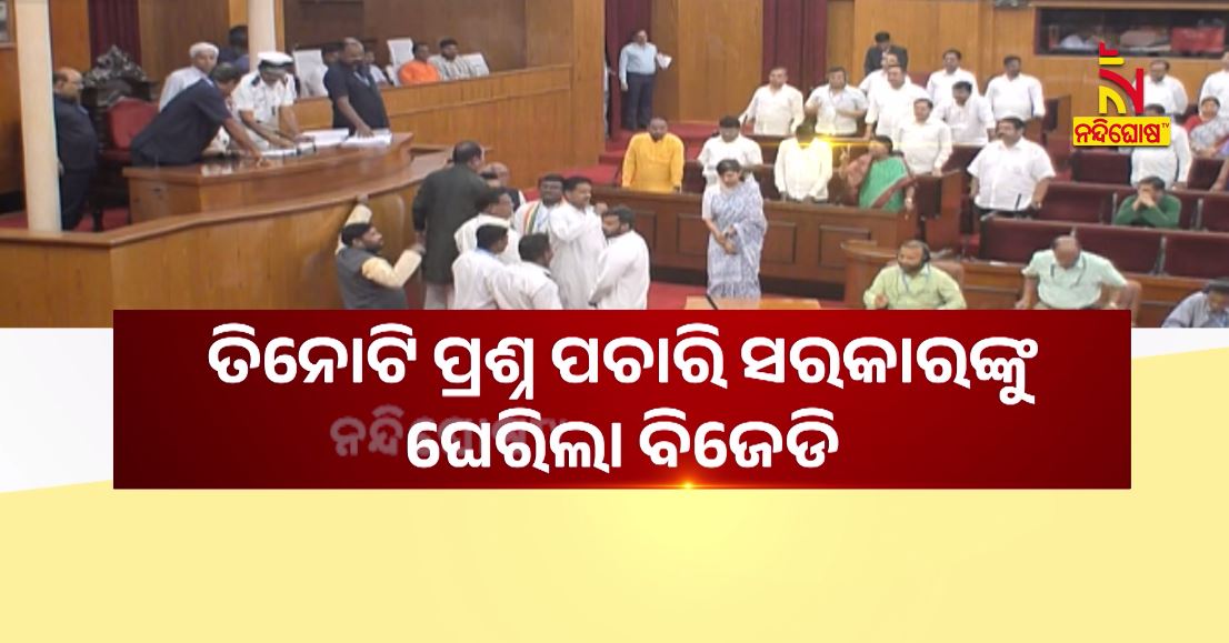 ଭୁବନେଶ୍ବର: ବିଧାନସଭାର ଦ୍ବିତୀୟ ପର୍ଯ୍ୟାୟ ଆରମ୍ଭରୁ ହୁଲସ୍ତୁଲ ହୋଇଛି ଗୃହ । ଅଧିବେଶନର ପ୍ରଥମ ପର୍ଯ୍ୟାୟରେ ସରକାରଙ୍କୁ ଯେଉଁ ପ୍ରଶ୍ନ ବିଜେଡି ପଚାରିଥିଲା, ଦ୍ବିତୀୟ ପର୍ଯ୍ୟାୟର ପ୍ରଥମ ଦିନରେ ତାହାର ଉତ୍ତର ମାଗିଛି । ଓଡିଆ ଏଏସଓଙ୍କୁ ରାଜ୍ୟପାଳଙ୍କ ପୁଅ ମାଡ଼ ମାରିବା, ମୁଖ୍ୟମନ୍ତ୍ରୀଙ୍କ ନାଁରେ ସ୍ବାଧିକାର ଭଙ୍ଗ ନୋଟିସ, ବିରୋଧୀ ଦଳ ନେତା ଗିରଫ ନେଇ ସଂସଦୀୟ ମନ୍ତ୍ରୀଙ୍କ ବିବୃତିକୁ ବାଦ ଦେବାକୁ ଦାବି କରିଛି ବିଜେଡି । ଅନ୍ୟପଟେ ଛାତ୍ର କଂଗ୍ରେସ ନିର୍ବାଚନ କରିବା ଦାବିରେ ହଟ୍ଟଗୋଳ କରିଛି କଂଗ୍ରେସ । ବିରୋଧୀଙ୍କ ସରକାର ବିରୋଧୀ ଗର୍ଜନ ଶାସକ ଦଳକୁ ଗୃହରେ ଅକଳରେ ପକାଇଛି ।