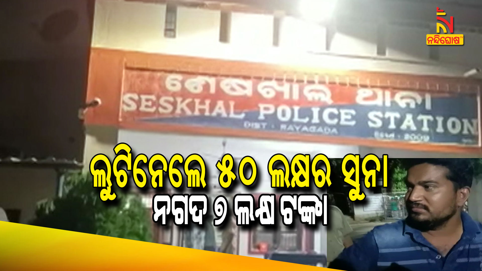 ରାୟଗଡ଼ା: ବନ୍ଧୁକ ମୁନରେ ଲୁଟିନେଲେ ନଗଦ ୭ ଲକ୍ଷ ଟଙ୍କା ଓ ସୁନା ଅଳଙ୍କାର । ଜଣେ ବ୍ୟବସାୟୀଙ୍କ ଠାରୁ ଲୁଟିନେଇଛନ୍ତି ଲୁଟେରା । ମିଳିଥିବା ସୂଚନା ମୁତାବକ ସୁନାର ମୁଲ୍ୟ ପାଖାପାଖି ୫୦ ଲକ୍ଷ ଟଙ୍କ ହେବ ବୋଲି ଅନୁମାନ କରାଯାଉଛି । ରାୟଗଡା ଜିଲ୍ଲା ଓଡ଼ିଶା ଓ ଆନ୍ଧ୍ର ସୀମାନ୍ତ ଜେମାଦେଇପେଣ୍ଠରେ ଘଟିଛି ଏଭଳି ଘଟଣା ।