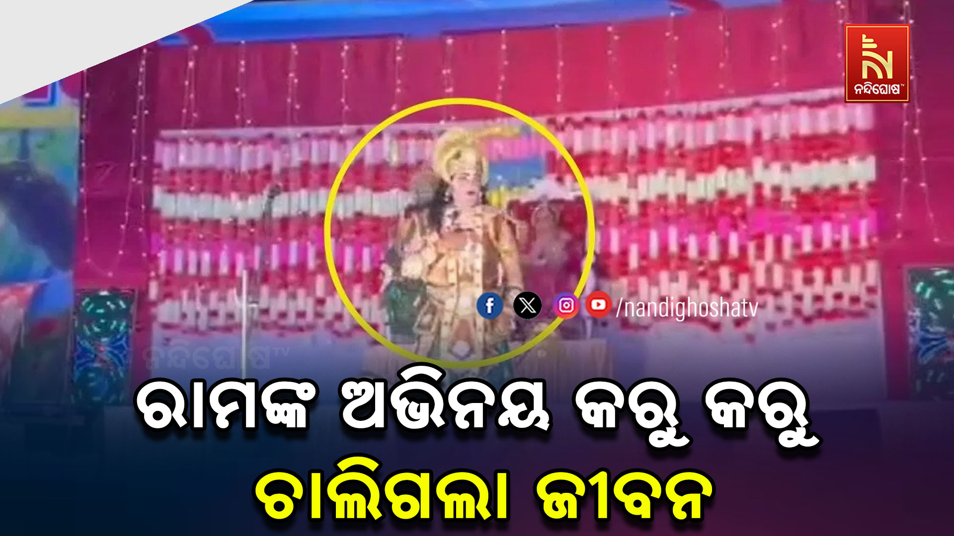 ନନ୍ଦିଘୋଷ ବ୍ୟୁରୋ: ଏମିତି ବି ଆସେ ମୃତ୍ୟୁ .. କରୁଥିଲେ ଅଭିନୟ ଚାଲିଗଲା ଜୀବନ । ଦିଲ୍ଲୀର ଶାହାଦରା ଠାରେ ଚାଲିଥିବା ରାମଲୀଳାରେ ଘଟିଛି ଏଭଳି ଅଘଟଣ । ପ୍ରଭୁ ରାମଙ୍କ ଭୂମିକାରେ ଅଭିନୟ କରୁଥିଲେ ବ୍ୟକ୍ତି ।ହଠାତ ଛାତିରେ ଯନ୍ତ୍ରଣା ଅନୁଭବ କରିବା ପରେ ଉଡିଯାଇଥିଲା ପ୍ରାଣବାୟୁ । ଯାହାର ଭିଡିଓ ଏବେ ସୋସିଆଲ ମିଡିଆରେ ଭାଇରାଲ ହେବାରେ ଲାଗିଛି ।