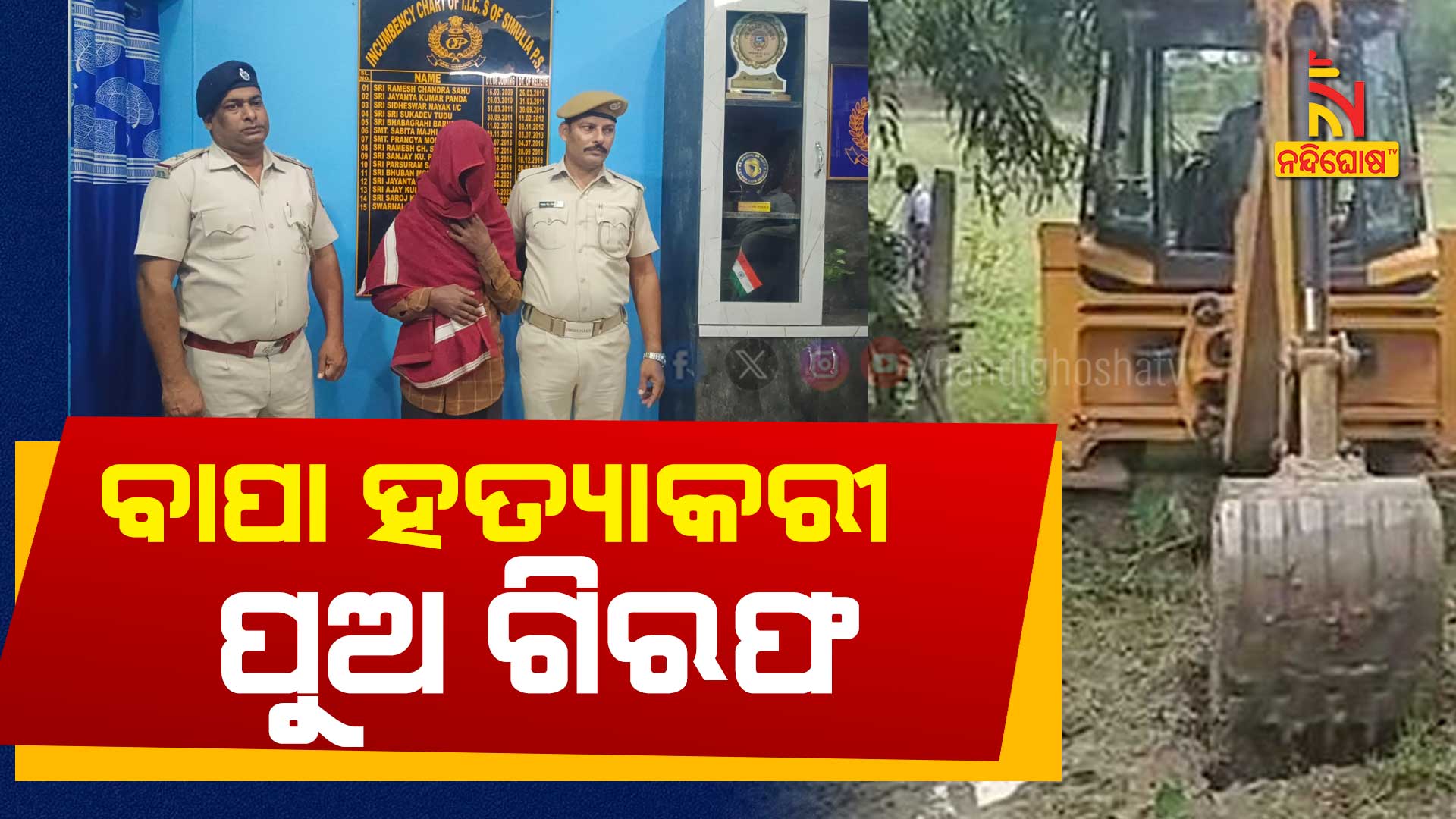 ସିମୁଳିଆ: ବାପାକୁ ହତ୍ୟା କରି ବିଲରେ ପୋତିବା ଘଟଣାର ୨୩ ଦିନ ପରେ ଅଭିଯୁକ୍ତ ପୁଅ ଗିରଫ । ହାଇଦ୍ରାବାଦରୁ ଅଭିଯୁକ୍ତ ପୁଅକୁ ଗିରଫ କଲା ସିମୁଳିଆ ପୋଲିସ । ଜୁନ ୧୬ ତାରିଖରେ ସିମୁଳିଆ ଥାନା ଗରସଙ୍ଗ ଗାଁରେ ଘଟିଥିଲା ବୀଭତ୍ସ ହତ୍ଯାକାଣ୍ଡ । ବାପା ପ୍ରଭାକର ବେହେରାଙ୍କୁ ଠେଙ୍ଗାରେ ପିଟିପିଟି ହତ୍ୟା କରିଥିଲା ପୁଅ ରମେଶ ଚନ୍ଦ୍ର ବେହେରା l