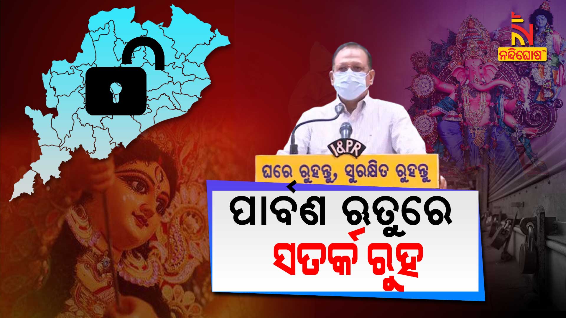 ଭୁବନେଶ୍ୱର: ପାର୍ବଣ ଋତୁରେ ସତର୍କ ରହିବା ପାଇଁ ସାମ୍ବାଦିକ ସମ୍ମିଳନୀରେ ସୂଚନା ଦେଲେ SRC ପ୍ରଦୀପ ଜେନା । ପାର୍ବଣର ଋତୁ ଚାଲିଥିଲା ବେଳେ କୋଭିଡର ଭୟବହତା ଯାଇନାହିଁ । ତେଣୁ ଏଭଳି ସ୍ଥିତିରେ କିପରି ସତର୍କ ରହିବା ଏବଂ ଏଥିପାଇଁ ରାଜ୍ୟ ସରକାର କେଉଁ କେଉଁ ନୂଆ ଗାଇଡଲାଇନ ଜାରି କରିବାକୁ ଯାଉଛନ୍ତି ସେନେଇ ସୂଚନା ଦେଇଛନ୍ତି ପ୍ରଦୀପ ଜେନା । ଆଜି ଗଣେଶ ଚତୁର୍ଥୀ ଥିବାବେଳେ ଆଗକୁ ନୂଆଖାଇ ଏବଂ ଦୂର୍ଗା ପୂଜା ହେବାକୁ ଯାଉଛି । ତେଣୁ ଏଭଳି ସ୍ଥିତିରେ ସତର୍କ ଏବଂ ସୁରକ୍ଷିତ ରହିବା ପାଇଁ ଘରେ ବସି ପର୍ବ ପାଳିବାକୁ ପରାମର୍ଶ ଦେଇଛନ୍ତି ଏସଆରସି ।
