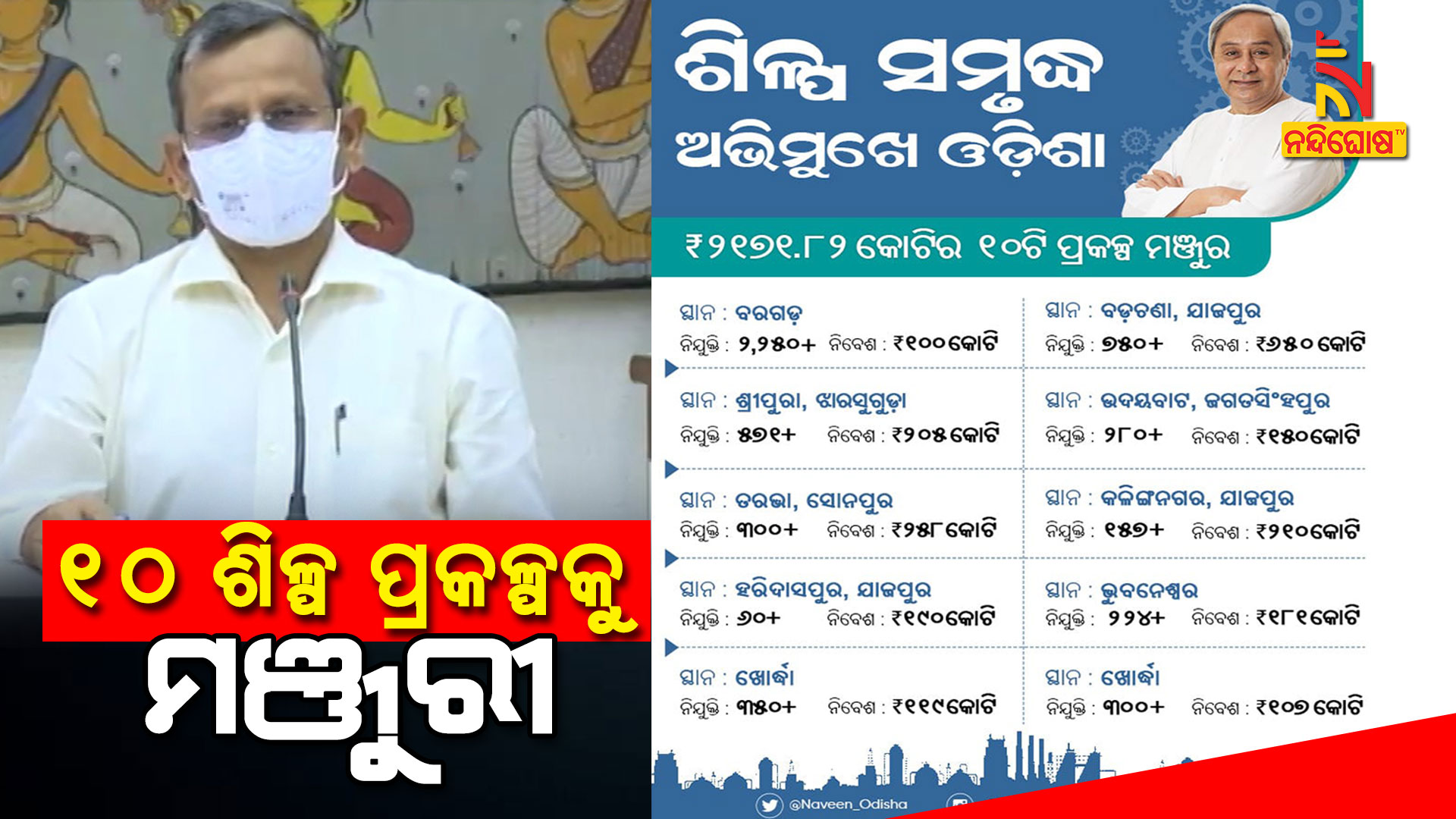 ଦକ୍ଷ ଶିଳ୍ପ ନୀତି ପାଇଁ ଓଡ଼ିଶା ଏବେ ନିବେଶକଙ୍କ ପ୍ରଥମ ପସନ୍ଦ ସାଜିଛି। ସବୁଠୁ ଖୁସିର ବିଷୟ ହେଉଛି ରାଜ୍ୟରେ ୫,୨୦୦ରୁ ଊର୍ଦ୍ଧ୍ଵ ନିଯୁକ୍ତି ସୁଯୋଗ ସୃଷ୍ଟି କରୁଥିବା ୧୦ଟି ଶିଳ୍ପ ପ୍ରକଳ୍ପକୁ ମଞ୍ଜୁରି ମିଳିଛି। ଏହି ପ୍ରକଳ୍ପଗୁଡ଼ିକ ଓଡ଼ିଶାର ଶିଳ୍ପ ସମୃଦ୍ଧ ଧାରାକୁ ଆହୁରି ତ୍ୱରାନ୍ୱିତ କରିବ। #OdishaOnTheMove pic.twitter.com/4ao1JIABfO