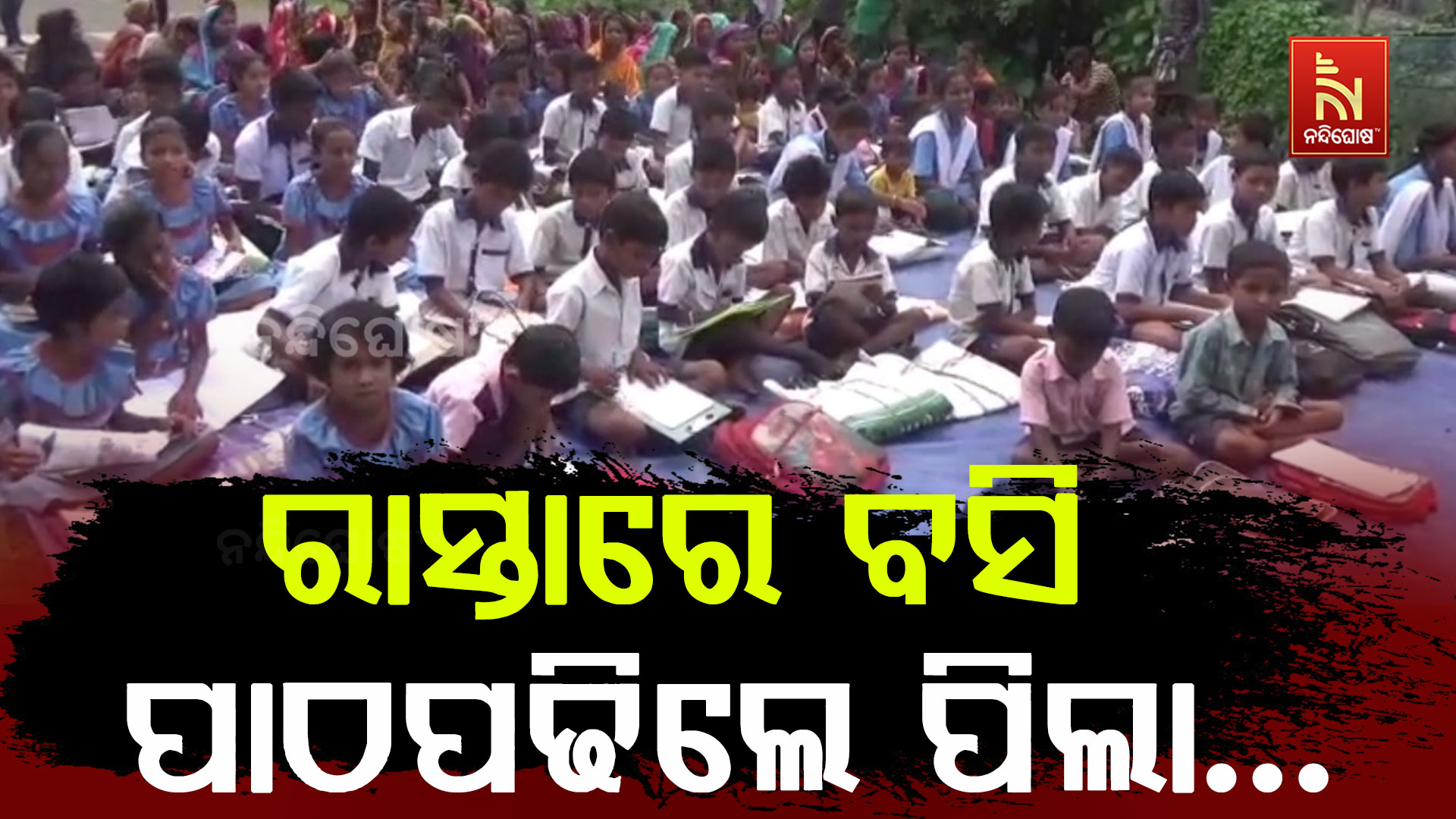 ରାଜରାସ୍ତାରେ ବସି ପାଠ ପଢିଲେ ଛାତ୍ରଛାତ୍ରୀ । ବର୍ଷାରେ ଭିଜି ଛାତ୍ରଛାତ୍ରୀ କଲେ ବିକ୍ଷୋଭ