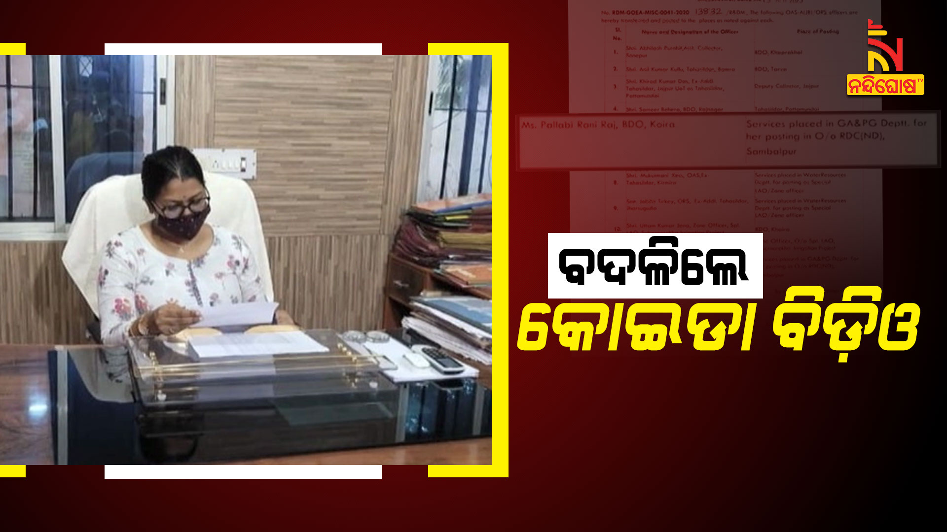 ସୁନ୍ଦରଗଡ଼: ବଦଳିଲେ ସୁନ୍ଦରଗଡ଼ ଜିଲ୍ଲା କୋଇଡା ବିଡିଓ । ପଲ୍ଲବୀ ରାଣୀ ରାଜଙ୍କୁ ଉତ୍ତରାଞ୍ଚଳ ଆରଡିସି ଅଫିସ ସମ୍ବଲପୁରକୁ ବଦଳି କରାଯାଇଛି । କୋଇଡା ବିଡିଓଙ୍କ ସହ ୧୨ ଜଣ ଓଏଏସ ଅଫିସରଙ୍କ ବଦଳି କରାଯାଇଛି । କୋଇଡା ବିଡିଓଙ୍କୁ ନେଇ ଗତ କିଛି ଦିନ ହେଲା ଚର୍ଚ୍ଚା ଲାଗି ରହିଥିଲା । କୋଇଡା ବିଡିଓଙ୍କୁ ତାଙ୍କ ବାପା ଓ ଭାଇ ମାଡ଼ ମାରିଥିବା କୋଇଡା ବିଡିଓ କୋଇଡା ଥାନାରେ ଗତ ମାର୍ଚ୍ଚ ମାସ ୨୯ ତାରିଖରେ ଅଭିଯୋଗ କରିଥିଲେ। ବିଭିନ୍ନ ସମୟରେ ବାପା ଓ ଭାଇ ଟଙ୍କା ମାଗୁଥିବା ଓ ଧମକ ଦେଉଥିବା ବିଡିଓ ଥାନାରେ ଅଭିଯୋଗ କରିଥିଲେ । ଗଣ୍ଡଗୋଳ ଶୁଣି ଆସିଥିବା ସମୟରେ ସହାୟକ ଯନ୍ତ୍ରୀଙ୍କୁ ବାପା ଓ ଭାଇ ମାଡ ମାରିଥିବା ବିଡିଓ ଅଭିଯୋଗ କରିଥିଲେ। ପରେ କୋଇଡା ପୋଲିସ ବିଡିଓଙ୍କ ବାପାଙ୍କୁ ଗିରଫ କରି ଘଟଣାର ତଦନ୍ତ ଆରମ୍ଭ କରିଥିଲେ।