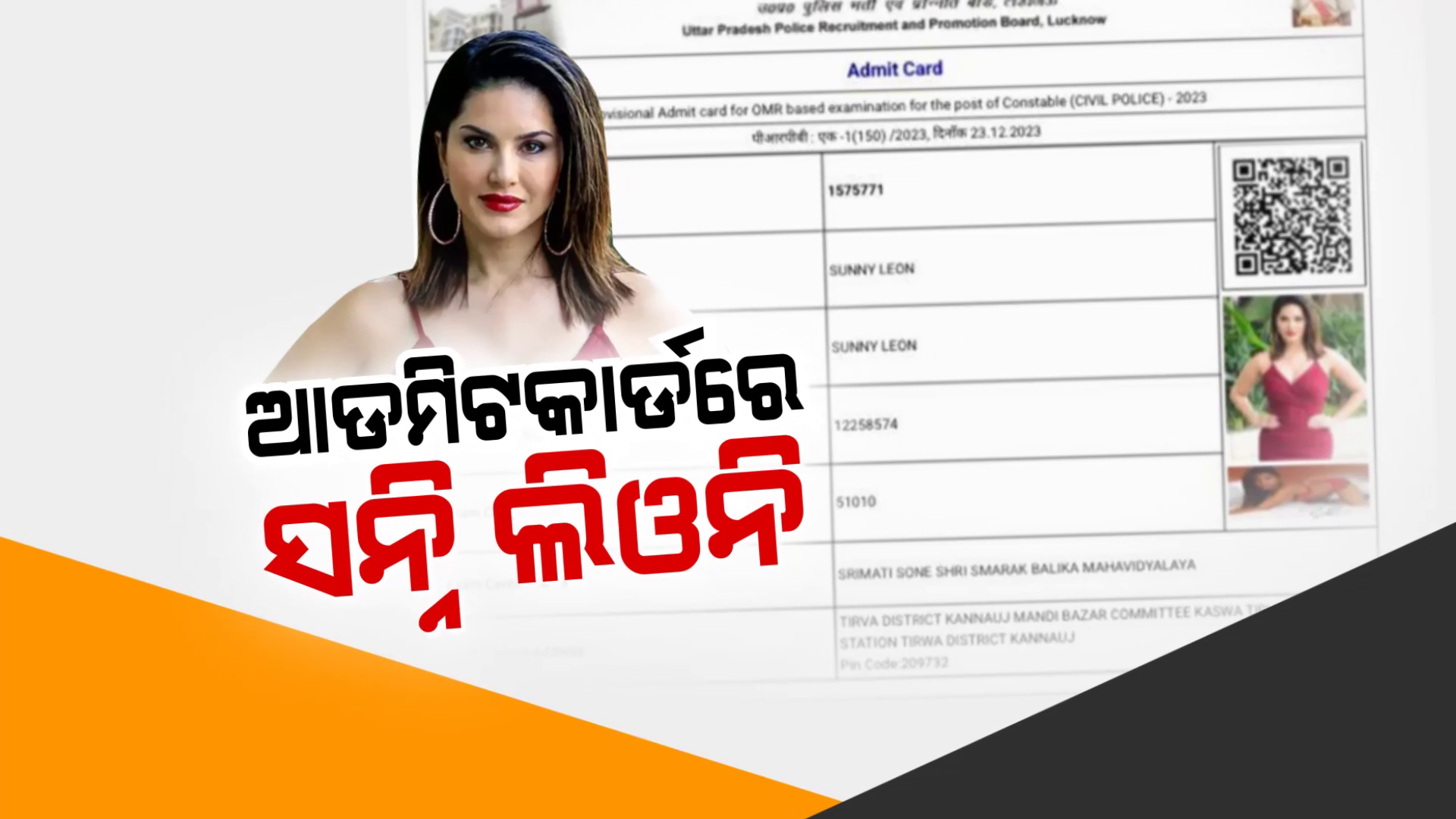 ନନ୍ଦିଘୋଷ ବ୍ୟୁରୋ: ପର୍ଣ୍ଣଷ୍ଟାର ସନ୍ନି ଲିଓନି ପୋଲିସ କନଷ୍ଟେବଳ ପ୍ରାର୍ଥୀ। କଥାଟି ନିଶ୍ଚୟ ସମସ୍ତଙ୍କୁ ଆଶ୍ଚର୍ଯ୍ୟ କରିବ। ହେଲେ ସନ୍ନିଙ୍କ ଫଟୋ ଲାଗିଥିବା ଆଡମିଟ କାର୍ଡ ଭାଇରାଲ ହେବା ପରେ ଏପରି କିଛି ଚର୍ଚ୍ଚା ଜୋର ଧରିଛି। ବାସ୍ତବ କଥା କିନ୍ତୁ ଅଲଗା। ଉତ୍ତରପ୍ରଦେଶରେ ପୋଲିସ କନଷ୍ଟେବଳ ପରୀକ୍ଷାକୁ ନେଇ ଏବେ ନାନା ସନ୍ଦେହ। ଆଡମିଟ କାର୍ଡରେ ସ୍ଥାନ ପାଇଛନ୍ତି ପ୍ରାର୍ଥୀଙ୍କ ବଦଳରେ ଅଭିନେତ୍ରୀ ସନ୍ନି ଲିଓନି । ଉତ୍ତରପ୍ରଦେଶ ପୋଲିସ କନଷ୍ଟେବଳ ରିକ୍ରୁଟମେଣ୍ଟ ପରୀକ୍ଷାରେ ଏହି ଆଡମିଟ କାର୍ଡକୁ ନେଇ ଜୋର ଧରିଛି ଚର୍ଚ୍ଚା । ଆଡମିଟ କାର୍ଡରେ ପ୍ରାର୍ଥୀଙ୍କ ନାଁ ସନ୍ନି ଲିଓନି ରହିଥିବାବେଳେ ତାଙ୍କର ଫଟୋ ବି ସ୍ଥାନୀତ ହୋଇଛି । ଏହି ଆଡମିଟ କାର୍ଡକୁ ନେଇ ପୋଲିସ ପରୀକ୍ଷାର ସ୍ବଚ୍ଛତା ଉପରେ ସସପେନ୍ସ ସୃଷ୍ଟି କରିଛି । ରାଜ୍ୟର ୭୫ଟି ଜିଲ୍ଲାର ୨ ହଜାର ୩୮୫ ପରୀକ୍ଷା କେନ୍ଦ୍ରରେ ଏହି ପରୀକ୍ଷା ହୋଇଥିଲା । ବଡ଼କଥା ହେଉଛି ସନ୍ନି ଲିଓନିଙ୍କ ପରୀକ୍ଷା କେନ୍ଦ୍ର ବି ଆଡମିଟ କାର୍ଡରେ ଦର୍ଶାଯାଇଥିଲା । ତାହା ଥିଲା ତିରଓ୍ବା ତହସିଲ ଅନ୍ତର୍ଗତ କନୌଜସ୍ଥିତ ଶ୍ରୀମତୀ ସୋନେଶ୍ରୀ ମେମୋରିଆଲ ଗର୍ଲସ୍ କଲେଜ । ଏହି ଘଟଣାରେ କନୌଜ ପୋଲିସର ସାଇବର ସେଲ ତଦନ୍ତ ଆରମ୍ଭ କରିଛି ।