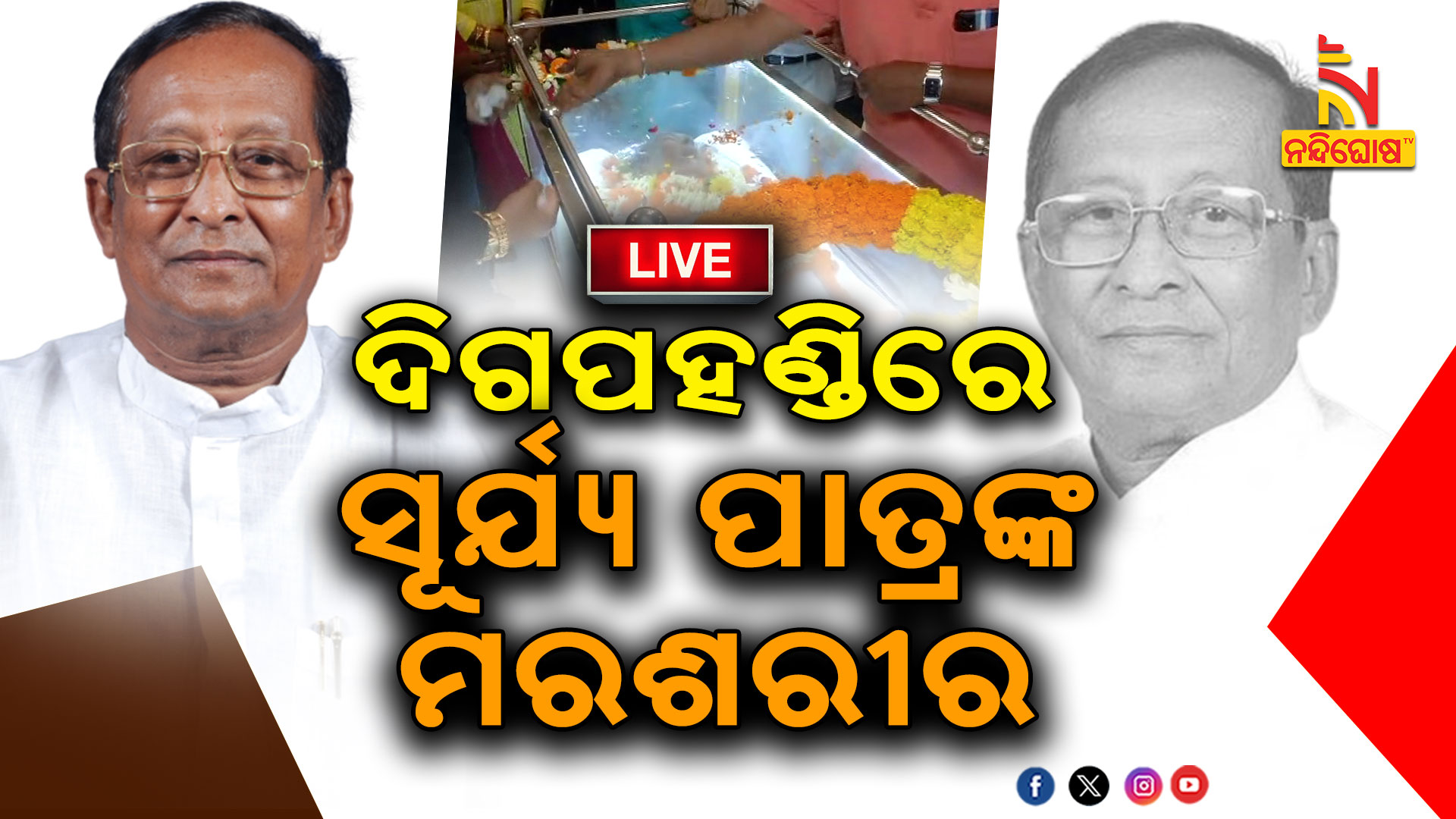 ଦିଗପହଣ୍ଡି: ଶେଷଯାତ୍ରାରେ ପୂର୍ବତନ ବାଚସ୍ପତି ସୂର୍ଯ୍ୟନାରାୟଣ ପାତ୍ର। ଦିଗପହଣ୍ଡିରେ ପଥପ୍ରାନ୍ତ ନିକଟରୁ ବିଶାଳ ଶୋଭାଯାତ୍ରାରେ ସୂର୍ଯ୍ୟଙ୍କ ପାର୍ଥିବ ଶରୀରକୁ ଜନ୍ମମାଟିକୁ ନିଆଯାଉଛି । ଶବ ଶୋଭାଯାତ୍ରାରେ ହଜାର ହଜାର ଲୋକ ସାମିଲ ହୋଇ ପ୍ରିୟ ନେତାଙ୍କୁ ବିଦାୟ ଜଣାଇଛନ୍ତି । କପାମଣ୍ଡି ନିକଟ ପଢ଼ିଆରେ ଶେଷ ଦର୍ଶନ ପାଇଁ ଲୋକଙ୍କ ଭିଡ଼ ଲାଗିଛି । ଦିଗପହଣ୍ଡିସ୍ଥିତ କପାମଣ୍ଡି ପାର୍ଶ୍ବରେ ଥିବା ସୂର୍ଯ୍ୟ ନାରାୟଣ ପାତ୍ରଙ୍କ ପୈତୃକ ଜମି ପଡିଆରେ ତାଙ୍କର ଶେଷକୃତ୍ୟ ସମ୍ପନ୍ନ ହେବ । ଗାର୍ଡ ଅଫ ଅନର ଦିଆଯିବା ପରେ ରାଷ୍ଟ୍ରୀୟ ମର୍ଯ୍ୟାଦା ସହିତ ଅନ୍ତିମ ସଂସ୍କାର କରାଯିବ । ଗତକାଲି ୭୪ ବର୍ଷ ବୟସରେ ଘରୋଇ ହସପିଟାଲରେ ତାଙ୍କର ପରଲୋକ ହୋଇଥିଲା । ସକାଳେ ମୁଖ୍ୟମନ୍ତ୍ରୀ ନବୀନ ପଟ୍ଟନାୟକ ସ୍ବର୍ଗତ ସୂର୍ଯ୍ୟ ନାରାୟଣ ପାତ୍ରଙ୍କ ବାସଭବନକୁ ଯାଇ ଶେଷ ଦର୍ଶନ କରିଥିଲେ ।ମରଶରୀରକୁ ଶଙ୍ଖ ଭବନକୁ ନିଆଯାଇ ସେଠାରେ ଶ୍ରଦ୍ଧାଞ୍ଜଳି ପ୍ରଦାନ କରାଯାଇଛି । ପରେ ବିଧାନସଭା ପରିସରରେ ଗାର୍ଡ ଅଫ ଅନର ପ୍ରଦାନ କରାଯାଇଛି ।