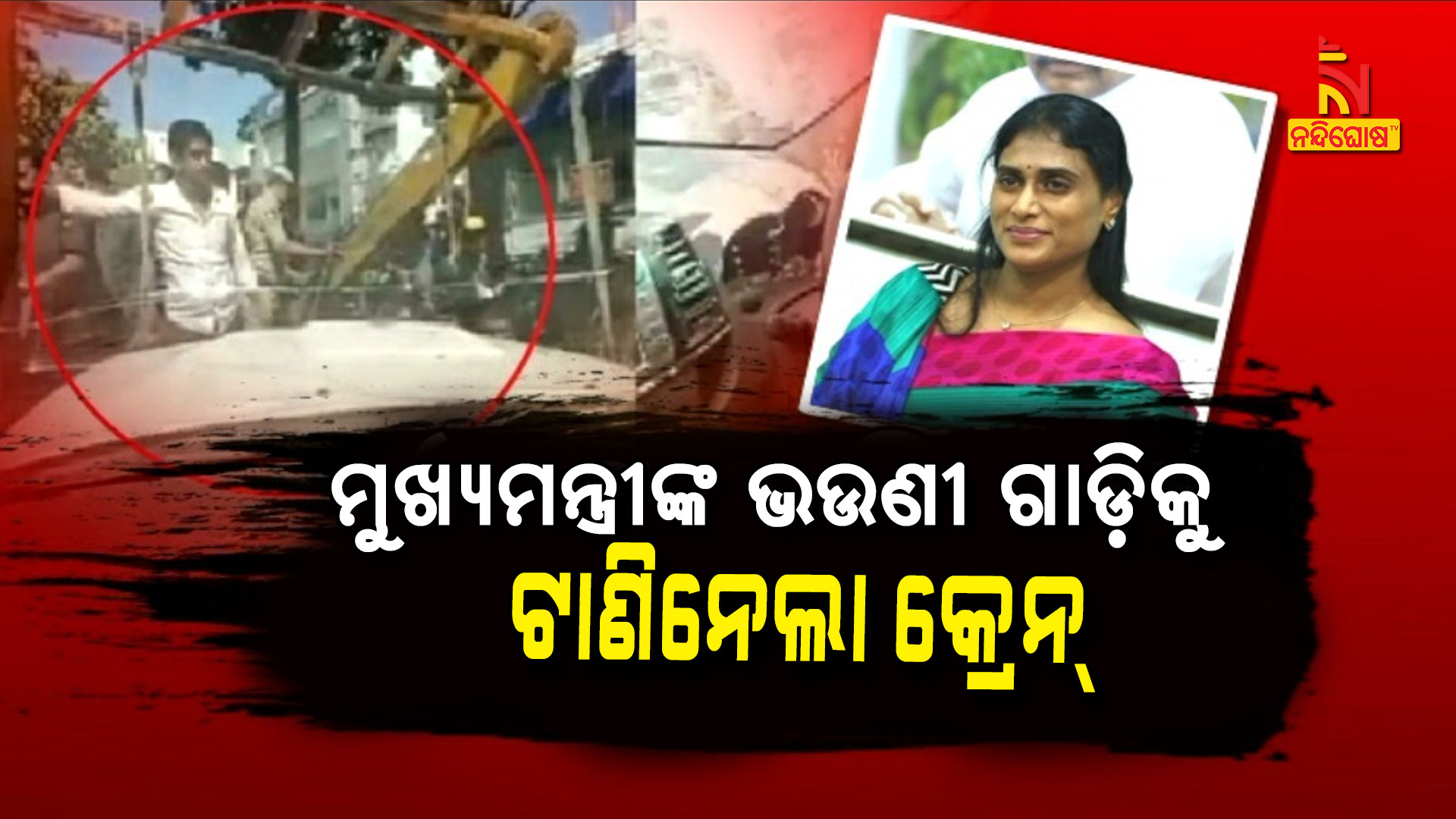 ହାଇଦ୍ରାବାଦ: ତେଲେଙ୍ଗାନା ନେତା ତଥା ଆନ୍ଧପ୍ରଦେଶର ମୁଖ୍ୟମନ୍ତ୍ରୀ ଓ୍ୱାଇଏସ ଜଗନମୋହନ ରେଡ୍ଡିଙ୍କ ଭଉଣୀଙ୍କ ଗାଡ଼ିକୁ ଟାଣିନେଲା କ୍ରେନ୍ । ତାଙ୍କ ଭଉଣୀ ଓ୍ୱାଇଏସ ଶର୍ମିଲା ଗାଡ଼ି ଭିତରେ ବସିଥିବା ବେଳେ କ୍ରେନ୍ ଗାଡ଼ି ଟାଣୁଥିବା ଦେଖିବାକୁ ମିଳିଛି । ତାଙ୍କ ଗାଡ଼ିକୁ ଥାନାକୁ ଟାଣି ନିଆଯାଇଥିବା ବେଳେ ସେଠାରେ ଏକ ଡ୍ରାମା ଦେଖିବାକୁ ମିଳିଛି । ଗାଡ଼ିରୁ ଓହ୍ଲାଇବାକୁ ଶର୍ମିଲା ମନାକରିବା ପରେ ତାଙ୍କ ସମର୍ଥକ ଓ ବିରୋଧୀଙ୍କ ମଧ୍ୟରେ ଜୋରଦାର ହଙ୍ଗାମା ହୋଇଛି ।