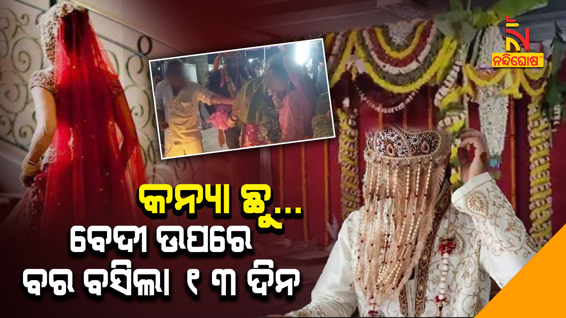 ନନ୍ଦିଘୋଷ ବ୍ୟୁରୋ: ବେଦୀ ପ୍ରସ୍ତୁତ । ବର ବି ପ୍ରସ୍ତୁତ । ଧୁମଧାମରେ ବରଯାତ୍ରୀଙ୍କୁ କରାଯାଉଛି ସ୍ୱାଗତ । କିଛି ସମୟ ପରେ କନ୍ୟା ଆସିବ, ମନ୍ତ୍ରଧ୍ୱନୀରେ ପଡିବ ହାତଗଣ୍ଠି। ସାତ ଜନମର ସାଥୀ ପାଲଟିବେ ଦୁଇ ଅଜଣା ମଣିଷ। ହେଲେ ମୁହୁର୍ତ୍ତକରେ ସବୁକିଛି ଓଲଟପାଲଟ ହୋଇଗଲା। କେହି ଭାବିପାରୁନଥିଲେ, କନ୍ୟା ପ୍ରେମିକ ସହ ଛୁ ହୋଇଯାଇଛି ବୋଲି…