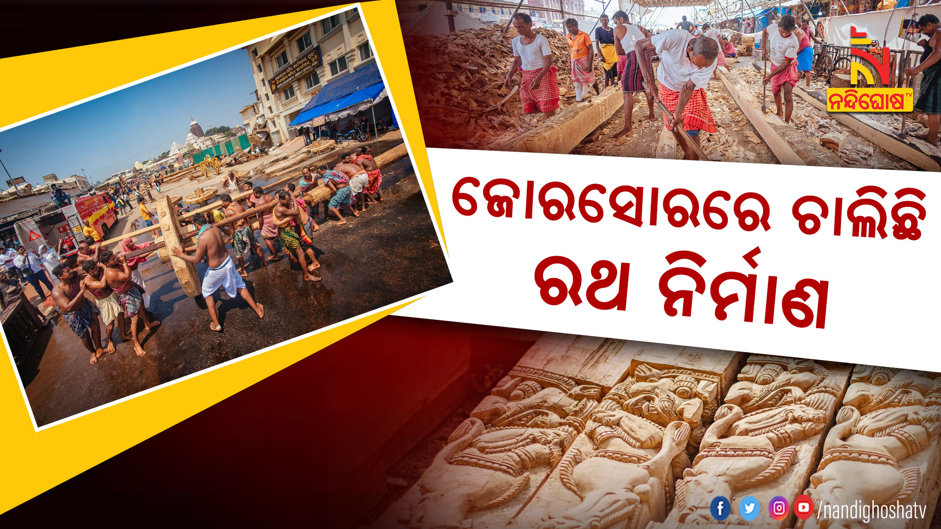 ପୁରୀ: ମହାପ୍ରଭୁଙ୍କ ରଥ ନିର୍ମାଣରେ ଲାଗିଛନ୍ତି ସେବକ । ରଥଖଳାରେ ତିନିରଥର ମହାରଣାଙ୍କ ଦ୍ବାରା ଗରଗରା, ଚଉଦ ନାହାକା, ଚାରି ନାହାକା ଏବଂ ପାଞ୍ଚ ଦଣ୍ଡା ନିର୍ମାଣ ଆଗେଇ ଚାଲିଥିବାବେଳେ ତିନି ରଥର ରୂପକାର ସେବକଙ୍କ ଦ୍ବାରା କୋଣଗୁଜ ଏବଂ ସାଲ ଗୁଜରେ ନୃସିଂହ ରୂପ ଖୋଦେଇ ଜାରି ରହିଛି । ଦୋଳବେଦୀ କମାର ଶାଳରେ ଓଝା ସେବକମାନେ ତିନି ରଥର ଦଣ୍ଡା କଣ୍ଟା ନିର୍ମାଣ ଶେଷ କରି ଯୋଖା କଣ୍ଟା ନିର୍ମାଣ କରୁଥିବାବେଳେ ରୂପକାର ସେବକମାନେ ରୂପ ଖୋଦେଇ ସହ ଅଳଙ୍କାର ତଥା ପଲିସ କାର୍ଯ୍ୟ କରୁଛନ୍ତି ।