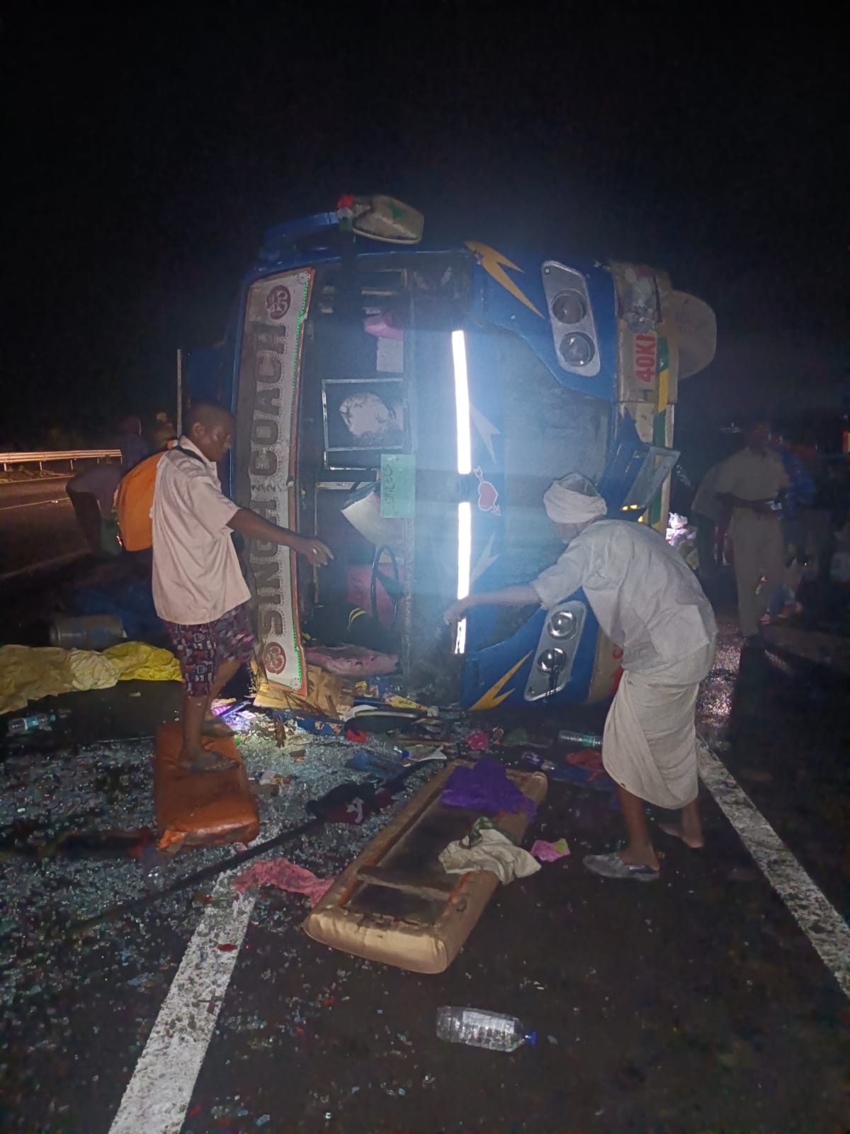 ଭାରସାମ୍ୟ ହରାଇ ଓଲଟିଲା ତୀର୍ଥଯାତ୍ରୀ ବସ୍