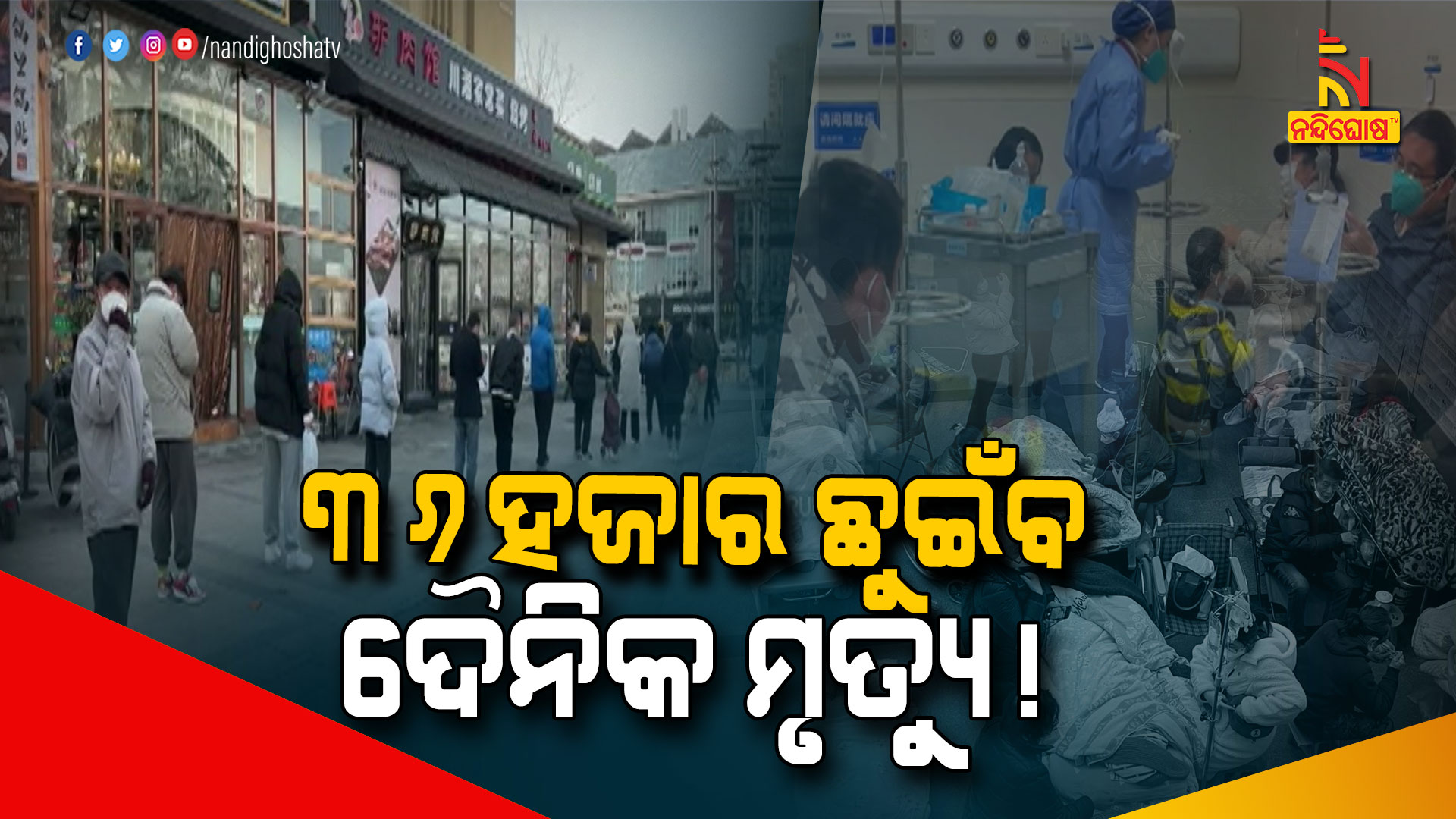 ଚାଇନିଜ ନୂଆବର୍ଷ ଛୁଟି ଯୋଗୁ ଲୋକମାନେ ନିଜ ନିଜ ଘରକୁ ଫେରୁଥିବାରୁ ସଂକ୍ରମଣ ଅତି ମାତ୍ରାରେ ବଢ଼ିପାରେ । କରୋନା ଭୂତାଣୁ ସଂକ୍ରମିତଙ୍କ ମଧ୍ୟରୁ ଅଧିକାଂଶ ଗୁରୁତର ହୋଇପଡ଼ୁଥିବାରୁ ହସ୍ପିଟାଲ ଗୁଡ଼ିକରେ ମଧ୍ୟରେ ସ୍ଥିତି ଖରାପ ହୋଇଛି । ବେଡ୍ ଅଭାବ ସାଙ୍ଗକୁ ମେଡିକାଲ କର୍ମଚାରୀ ସଙ୍କଟ ଯୋଗୁ କରୋନା ରୋଗୀ ଉପଯୁକ୍ତ ଚିକିତ୍ସା ପାଇପାରୁନାହାନ୍ତି । ହସ୍ପିଟାଲରେ ଭିଡ଼ ଓ ଚିକିତ୍ସା ଅଭାବରୁ ମଧ୍ୟ ଅନେକ ଆକ୍ରାନ୍ତଙ୍କର ମୃତ୍ୟୁ ହେଉଛି । ଡିସେମ୍ବର ଶେଷ ସୁଦ୍ଧା ଚୀନରେ ୬ ଲକ୍ଷରୁ ଊର୍ଦ୍ଧ୍ବ ଲୋକଙ୍କ ମୃତ୍ୟୁ ହୋଇଥିବା ରିପୋର୍ଟ ମିଳିଥିଲେ ବି ସରକାରୀ ରିପୋର୍ଟରେ ମୃତ୍ୟୁ ସଂଖ୍ୟା ବହୁ କମ୍ ଦର୍ଶାଇଛନ୍ତି ଚୀନ ସରକାର ।