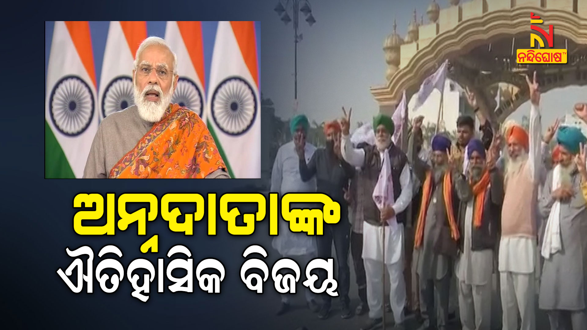 ପ୍ରଧାନମନ୍ତ୍ରୀଙ୍କ ଘୋଷଣା ସହ ଅନ୍ନଦାତାଙ୍କ ହୋଇଛି ଐତିହାସିକ ବିଜୟ । ଚାଷୀଙ୍କ ଜିଦ୍ ଆଗରେ ହାର ମାନିଲେ କେନ୍ଦ୍ର ସରକାର । ତରିବରିଆ ନିଷ୍ପତ୍ତି ନେଇ ଦେଲେ ପଛଘୁଞ୍ଚା । କୃଷି ଆଇନକୁ ପ୍ରତ୍ୟାହାର କରି ବ୍ୟାକ୍ଫୁଟ୍ ବିଜେପି ସରକାର ।