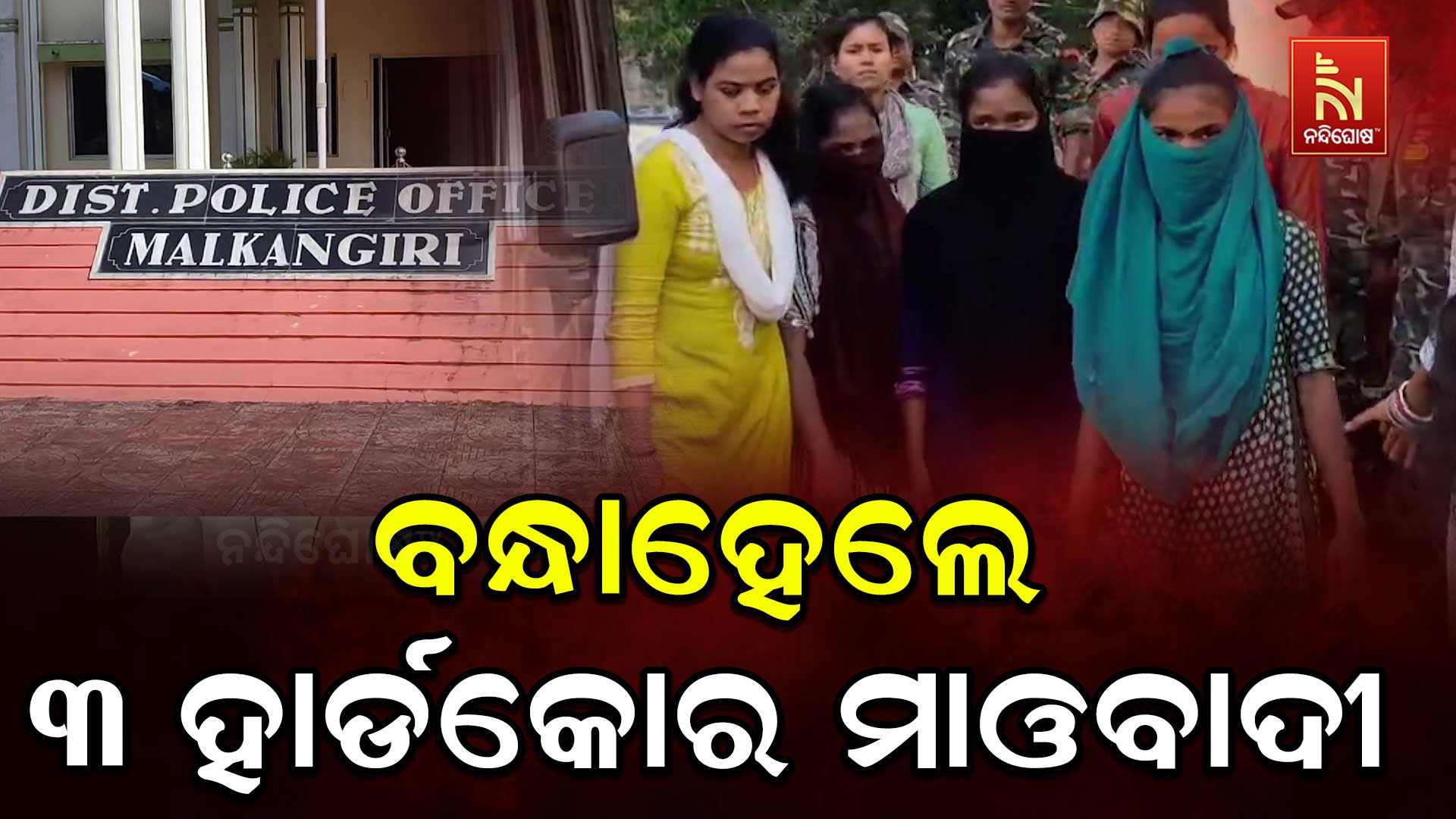 ମାଲକାନଗିରି: ମାଲକାନଗିରି ପୋଲିସକୁ ବଡ ସଫଳତା । ୩ ହାର୍ଡକୋର ମହିଳା ମାଓବାଦୀଙ୍କୁ ଗିରଫ କଲା ମାଲାକାନଗିରି ପୋଲିସ । ସମସ୍ତେ ଆନ୍ଧ୍ର ଓଡିଶା ବର୍ଡର ସାଉଥ ଜୋର୍ଣ୍ଣାଲ କମିଟି ମିଲେଟ୍ରି ପ୍ଲାଟୁନର ଥିଲେ ସଦସ୍ୟ ।