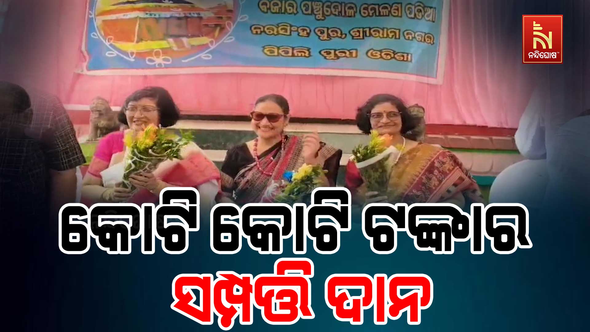 ପୁରୀ: ମହାନତା ଦେଖାଇଲେ ତିନି ଭଉଣୀ। କୋଟି କୋଟି ଟଙ୍କାର ସମ୍ପତ୍ତି ଦାନ କଲେ ତିନି ଭଉଣୀ। ପୁରୀ ଜିଲ୍ଲା ପିପିଲି ଅଞ୍ଚଳର ସୁଶୀଲ ଆଡ଼ିଆଙ୍କ ତିନି ଝିଅ ରୀନା ପାଲ, ସ୍ମିତା ଭଟାଚାର୍ଯ୍ୟ ଓ ଅନିତା ଦେ ନିଜର ସମ୍ପତ୍ତିକୁ ପଞ୍ଚୁ ଦୋଳ ମେଳଣ କମିଟିକୁ ଦାନ କରିଛନ୍ତି । ନିଜର ୩୫ ଡ଼ିସିମିଲ ସମ୍ପତ୍ତିକୁ ହସିହସି ଦାନ କରିଛନ୍ତି ତିନି ଭଉଣୀ।