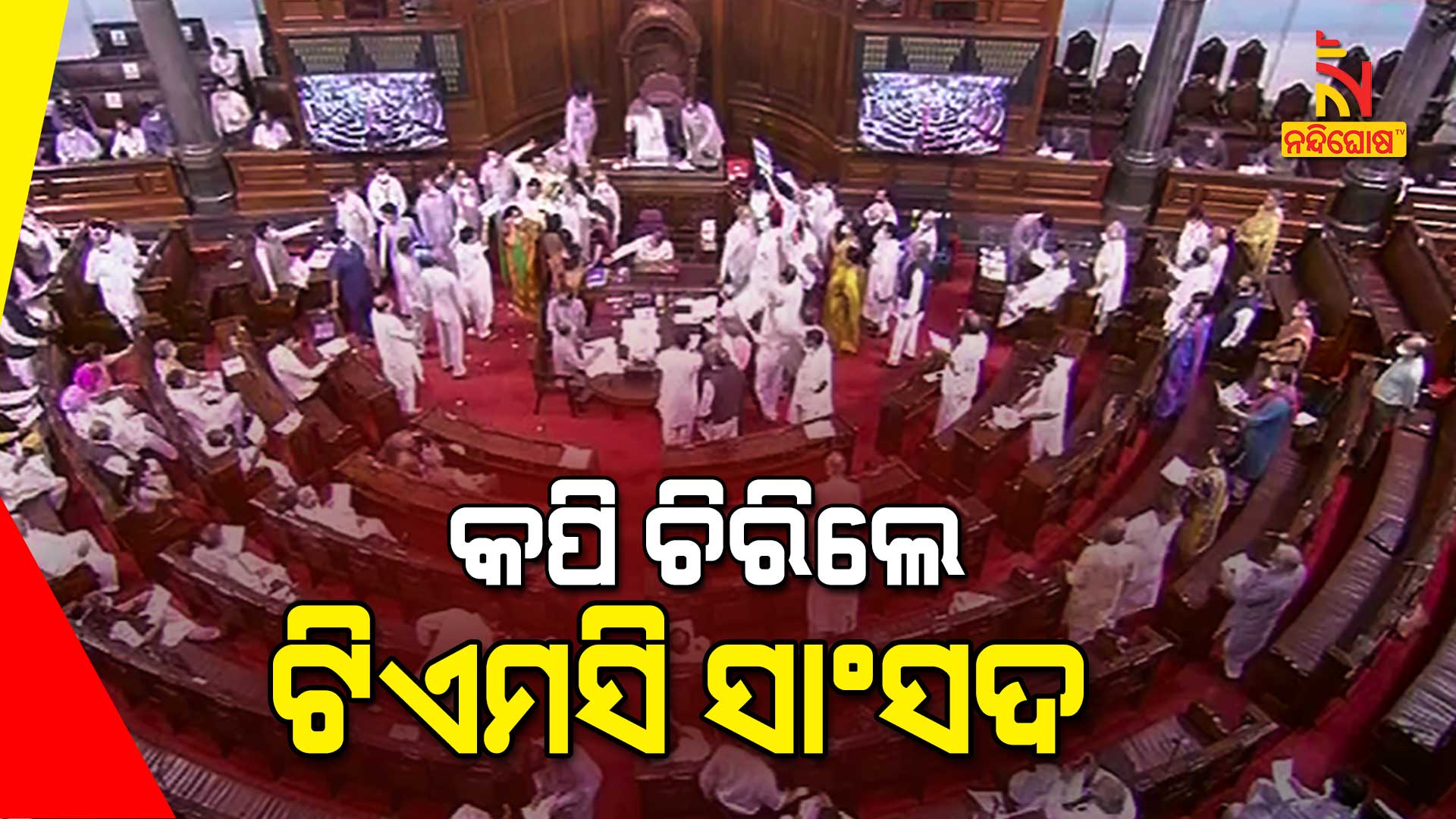 ଟିଏମସି ସାଂସଦ ମାନେ ଅଶ୍ୱିନୀ ବୈଷ୍ଣବଙ୍କ ହାତରୁ ବୟାନର କପି ନେଇ ଫାଡି ଦେଇଥିବା ସୂଚନା ମିଳିଛି।